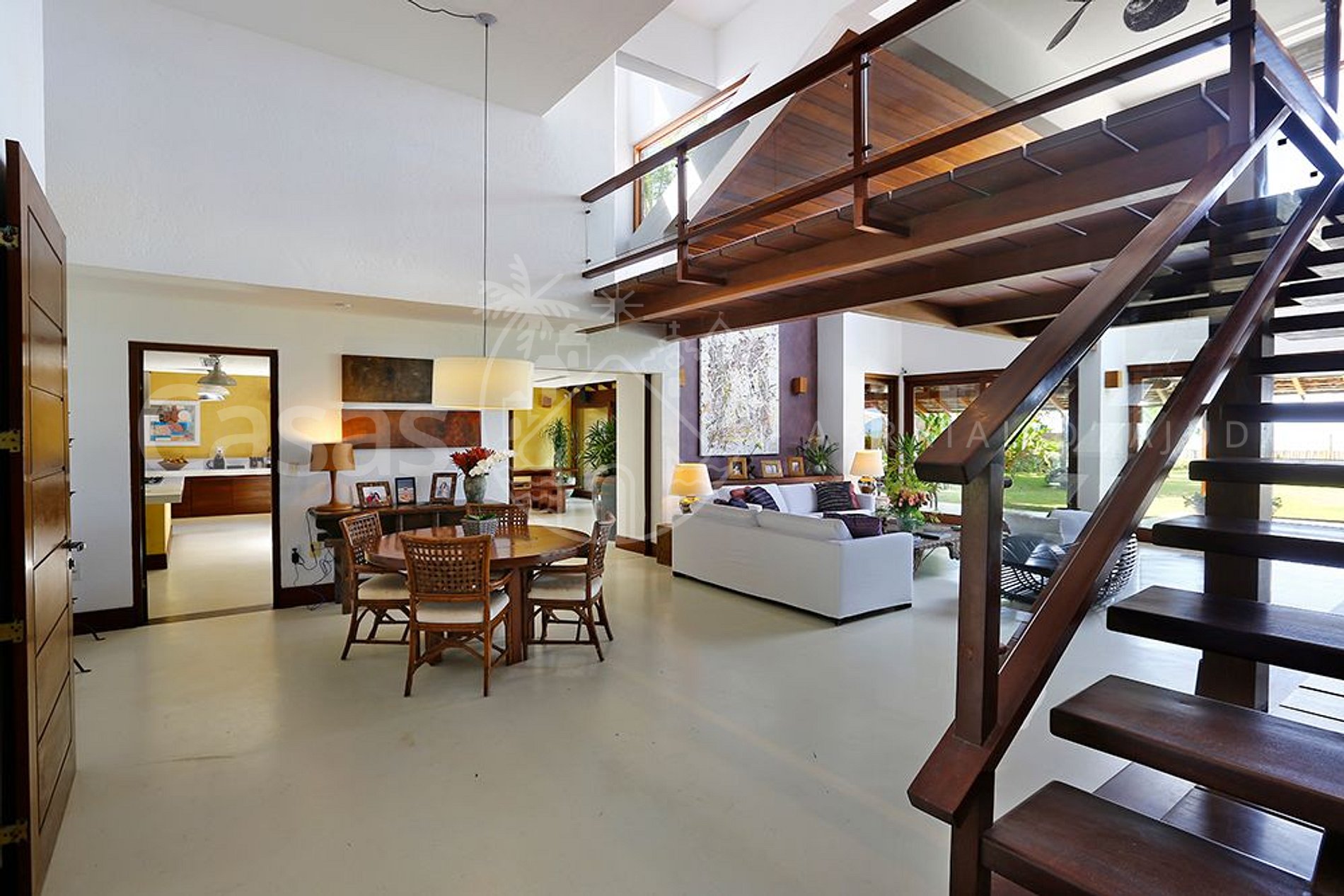 A casa principal, moderna e lindamente construída em frente o mar encanta por sua amplitude e diversidade de ambientes, conectando a propriedade ao jardim e oferecendo uma sensação de bem estar e conexão com a natureza.
