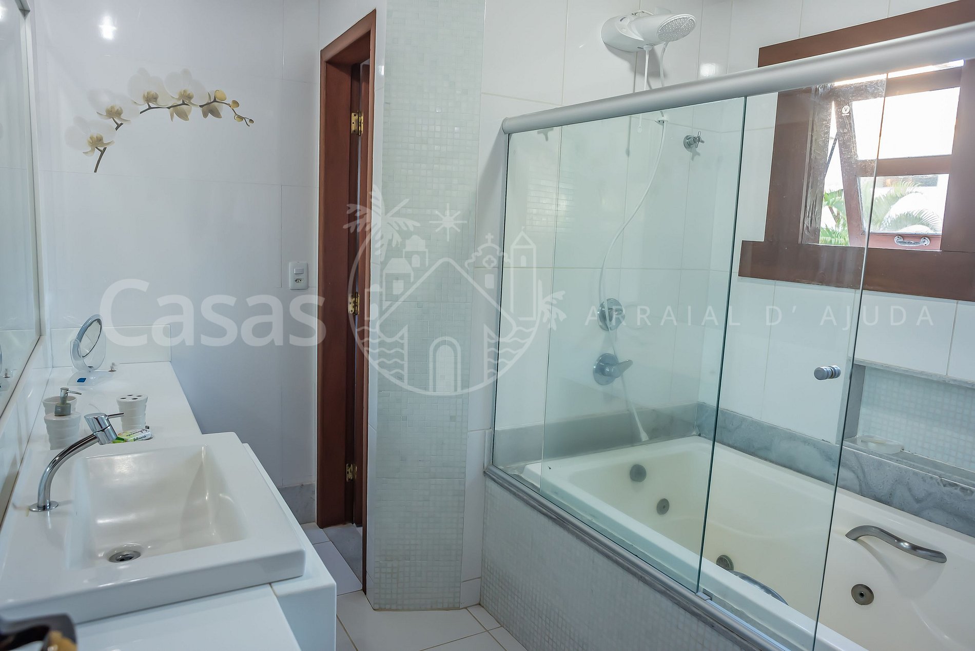 A Casa Mar está privilegiadamente localizada na praia de Araçaípe, com total conforto e comodidade pé na areia. Deck privado com quiosque sobre a praia, área de churrasqueira com sauna, quartos e varanda íntima climatizada. São cinco quartos todos com ar-condicionado. Quiosque privativo pé na areia, sauna e área coberta de churrasqueira.