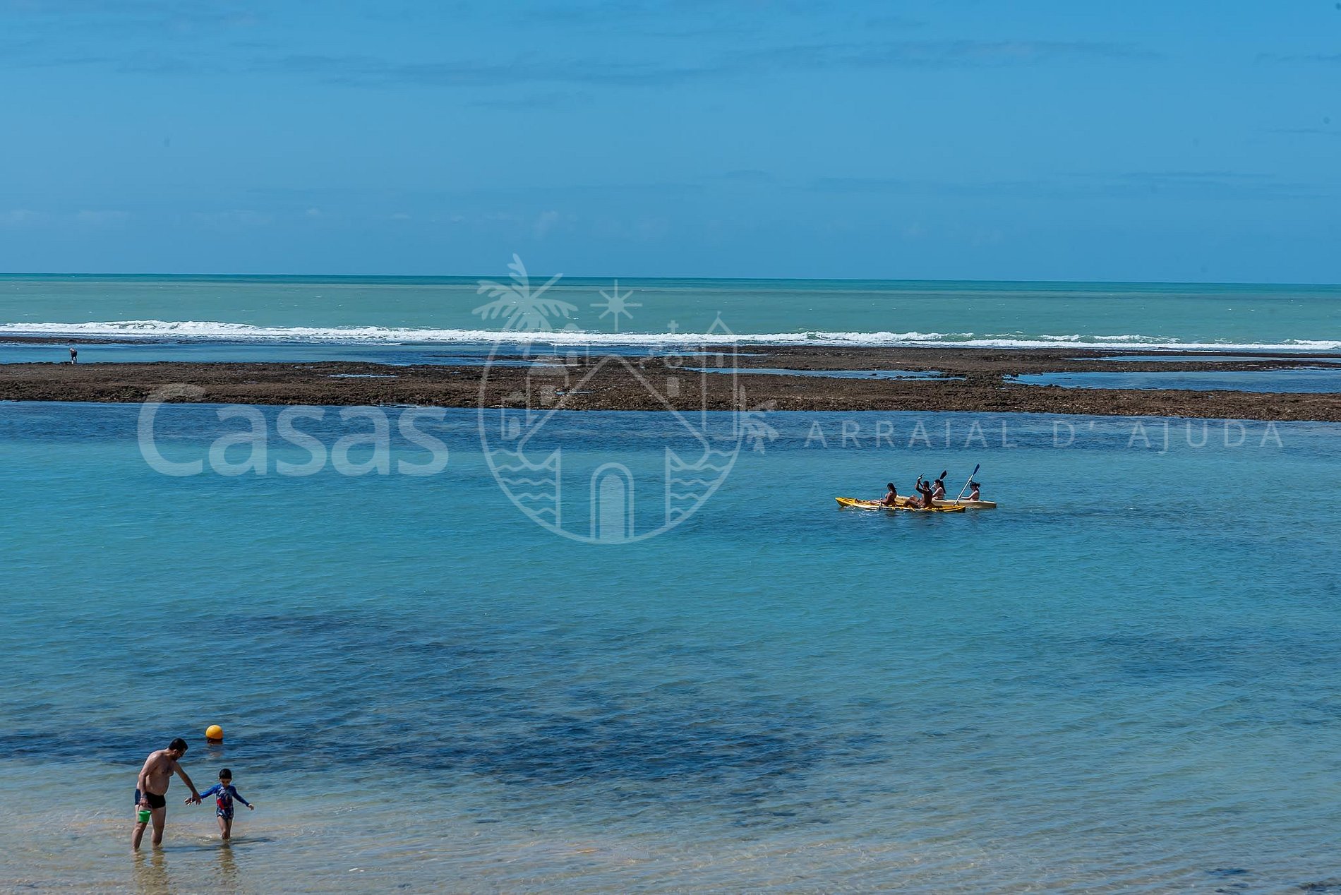 O condomínio oferece piscina adulto infantil, acesso direto a praia, portaria 24h e estacionamento para 1 carro.