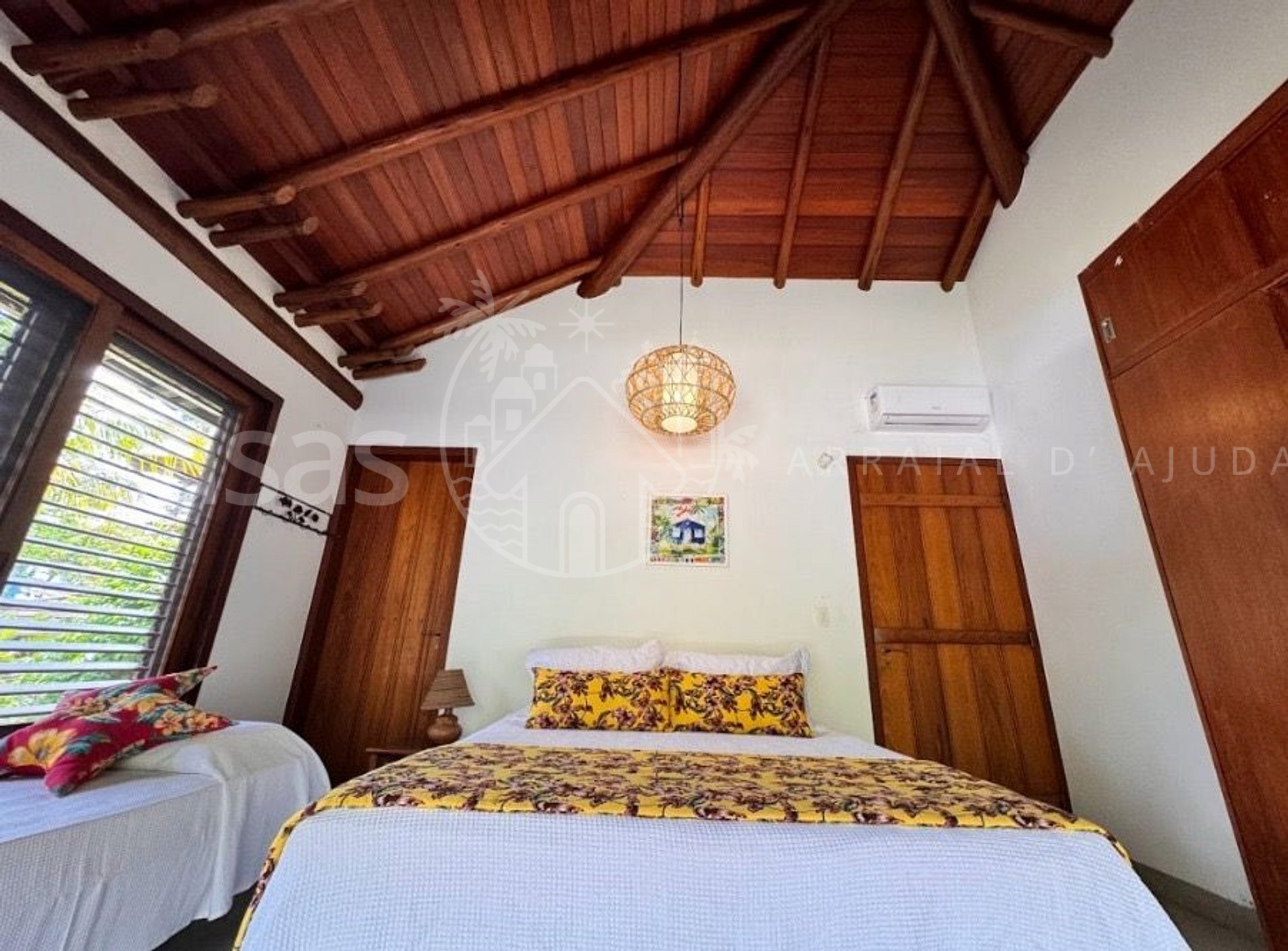 Suíte externa 4 - Andar térreo: cama queen (ou 2 solteiro), arara, ar condicionado, vista pro mar