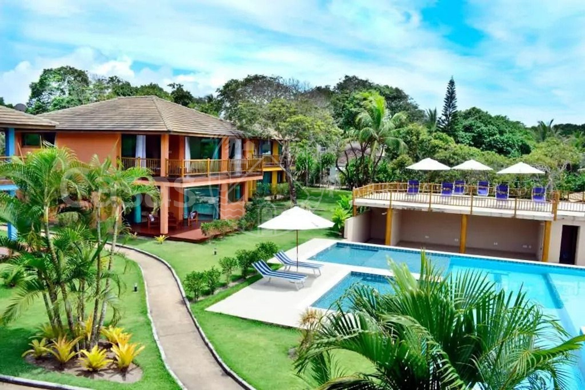 Maravilhoso condomínio de alto padrão, localizado a 50 metros da Praia de Araçaípe, com linda e extensa piscina com hidromassagem em meio a um bem cuidado jardim.