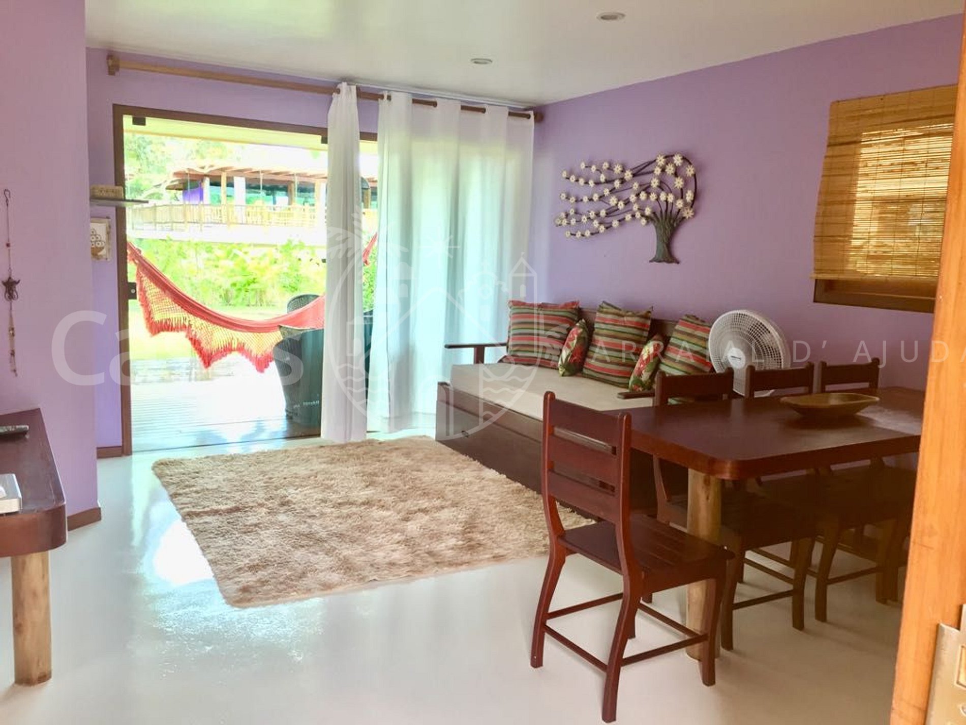 Aconchegante propriedade com quarto espaçoso, cama king size e cama solteiro, ar-condicionado split, sala ampla com cozinha conceito aberto, equipada. Sala com TV 42, streaming e canais de filmes, sofá cama, varanda com rede e divã.