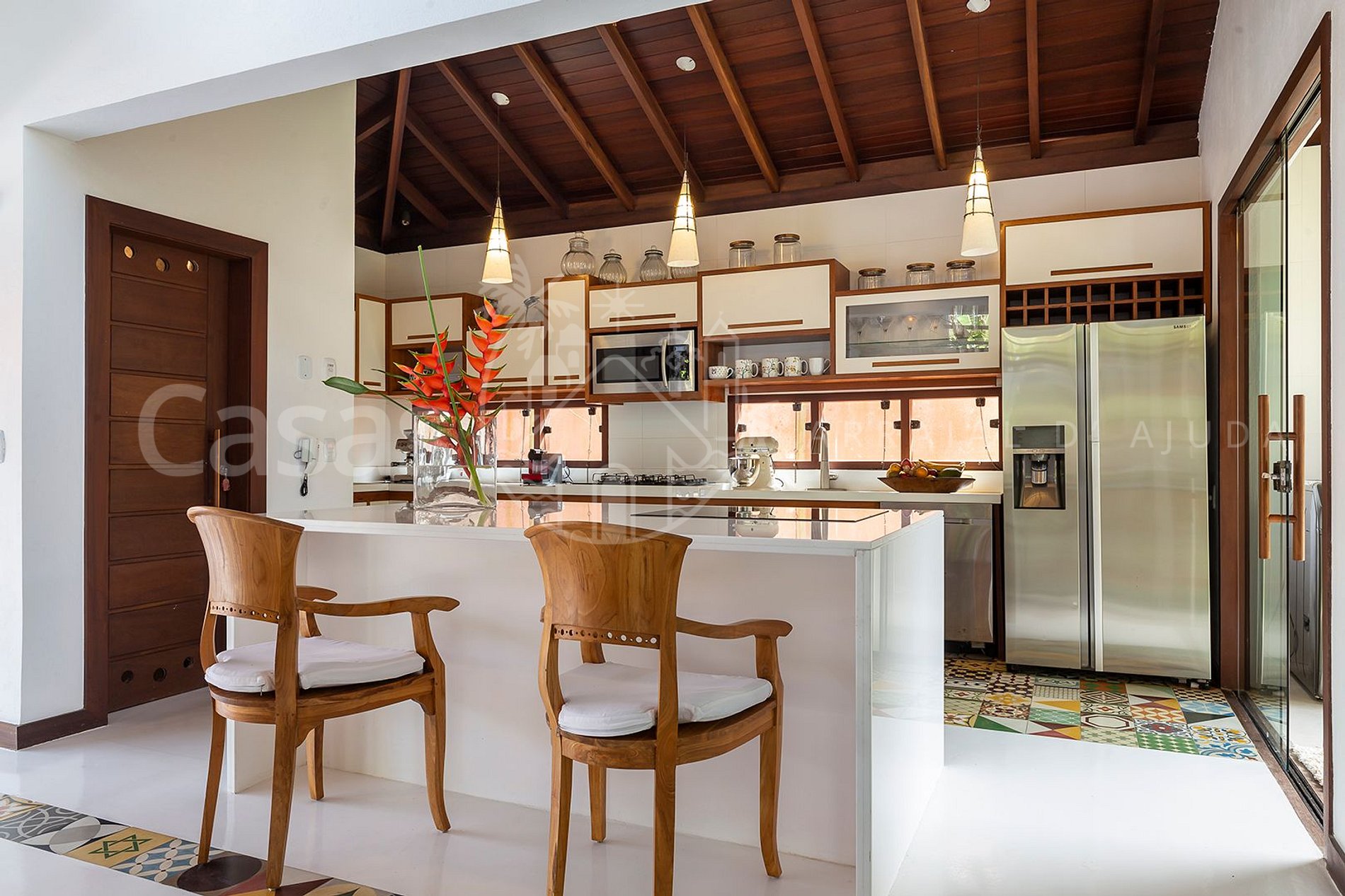 A localização da casa é bem próxima a Praia de Araçaípe, em bairro nobre do Arraial d'Ajuda.