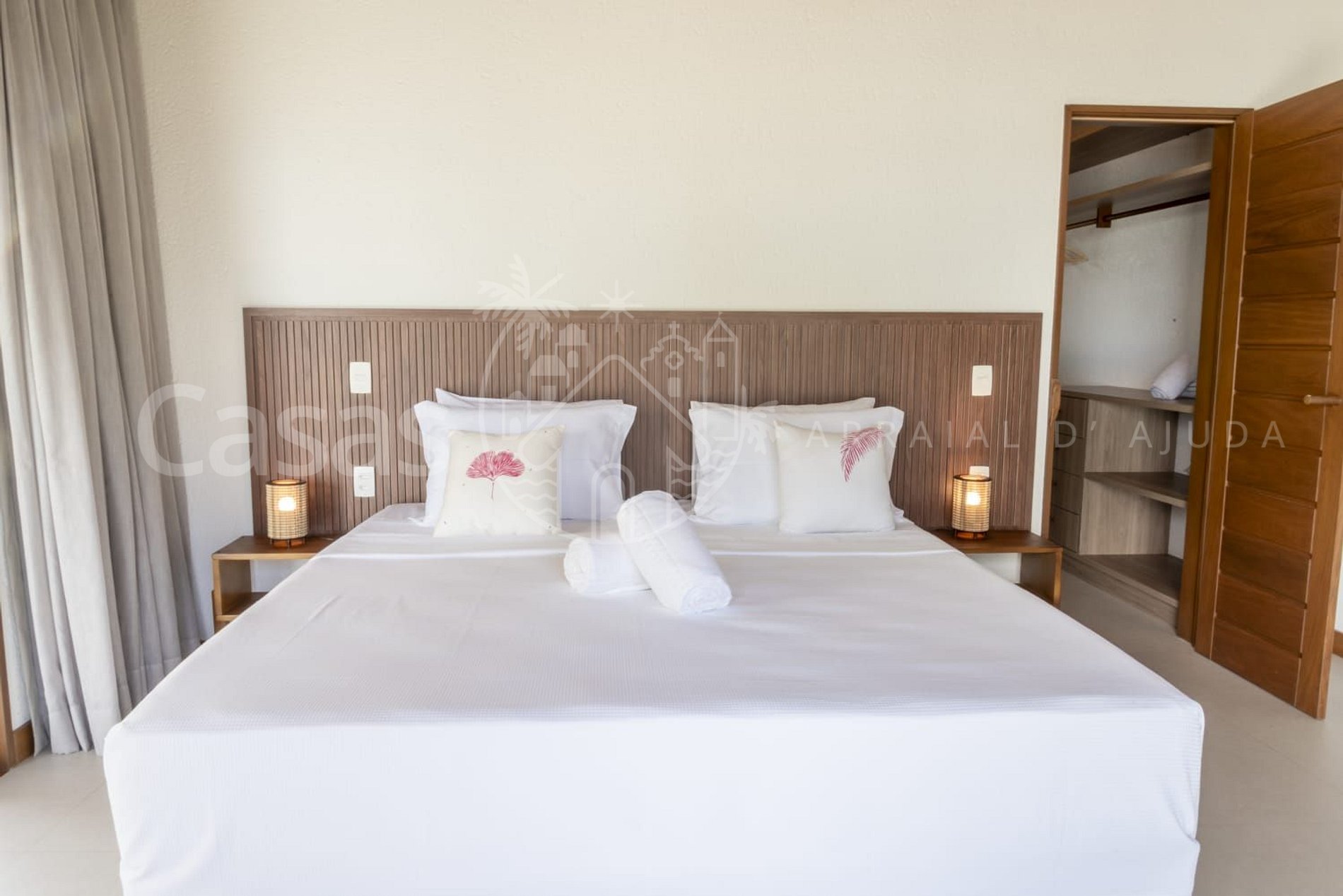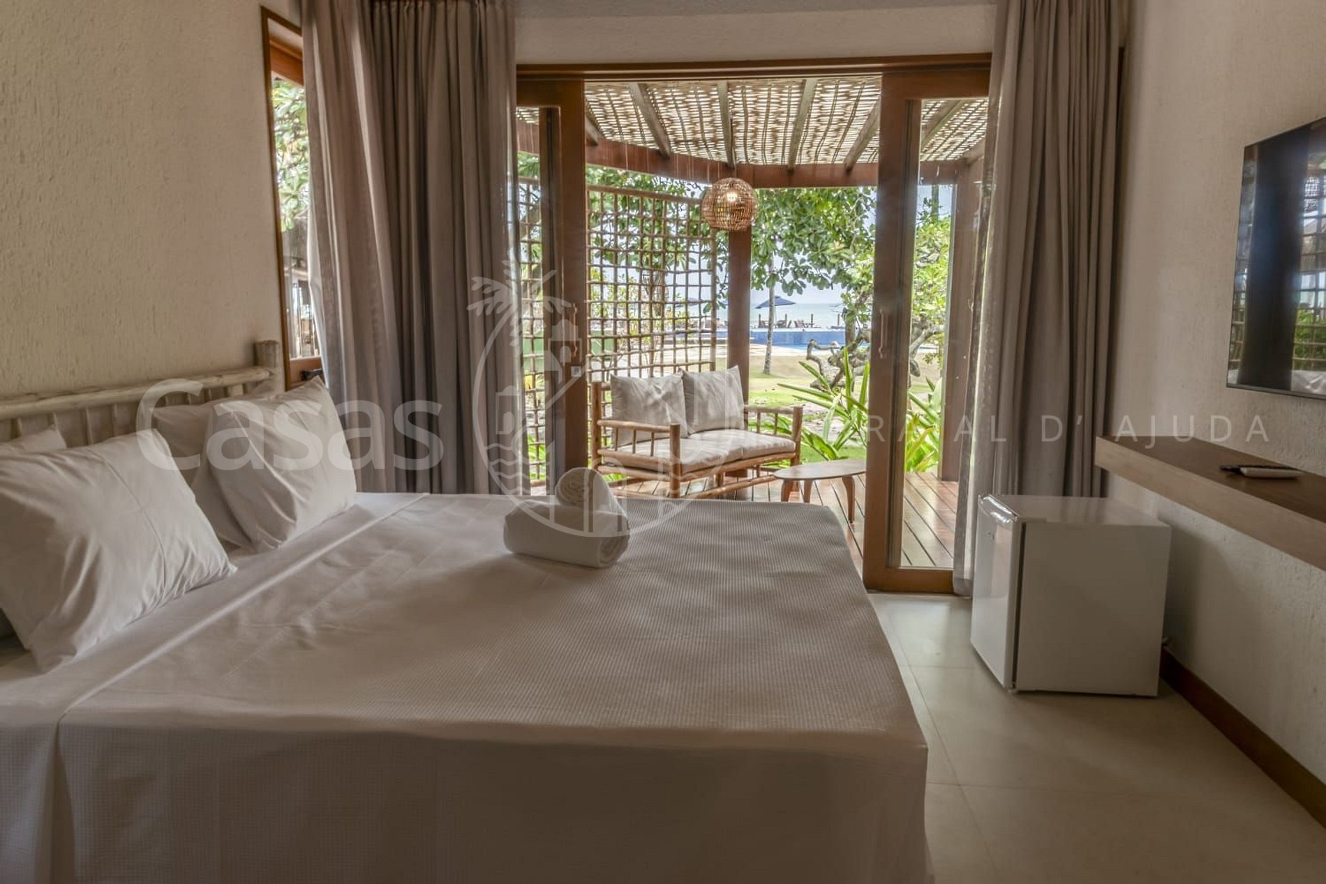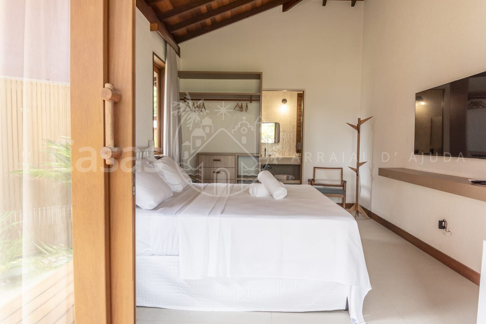 Esta linda propriedade com 6 suítes king size sendo a principal suíte frente mar, todas amplas e climatizadas, sendo 1 suítes no piso térreo, três suítes no piso superior e 2 bangalôs independentes, com ambientes confortáveis e aconchegantes, oferece acomodação para 12 hóspedes com estrutura impecável.