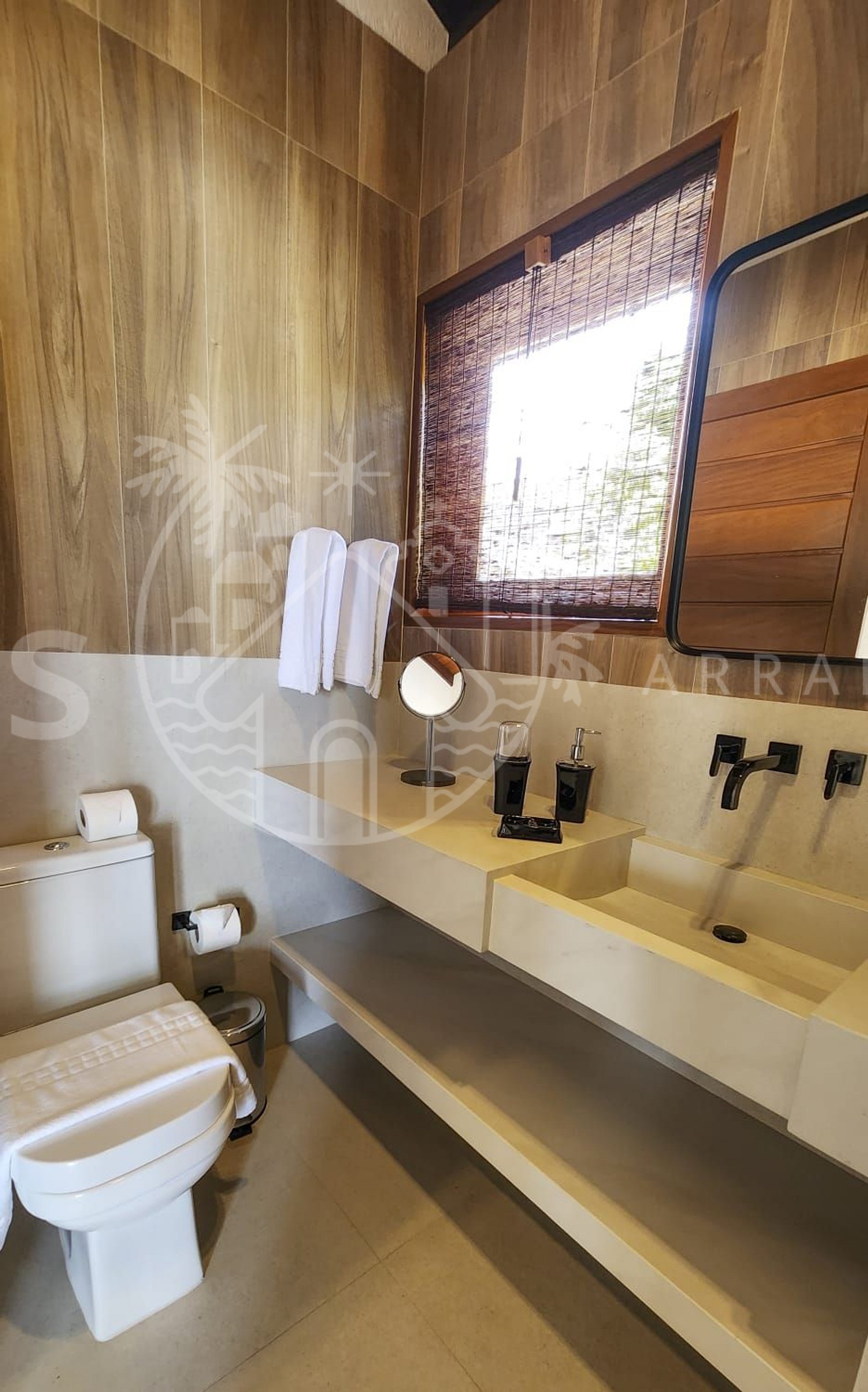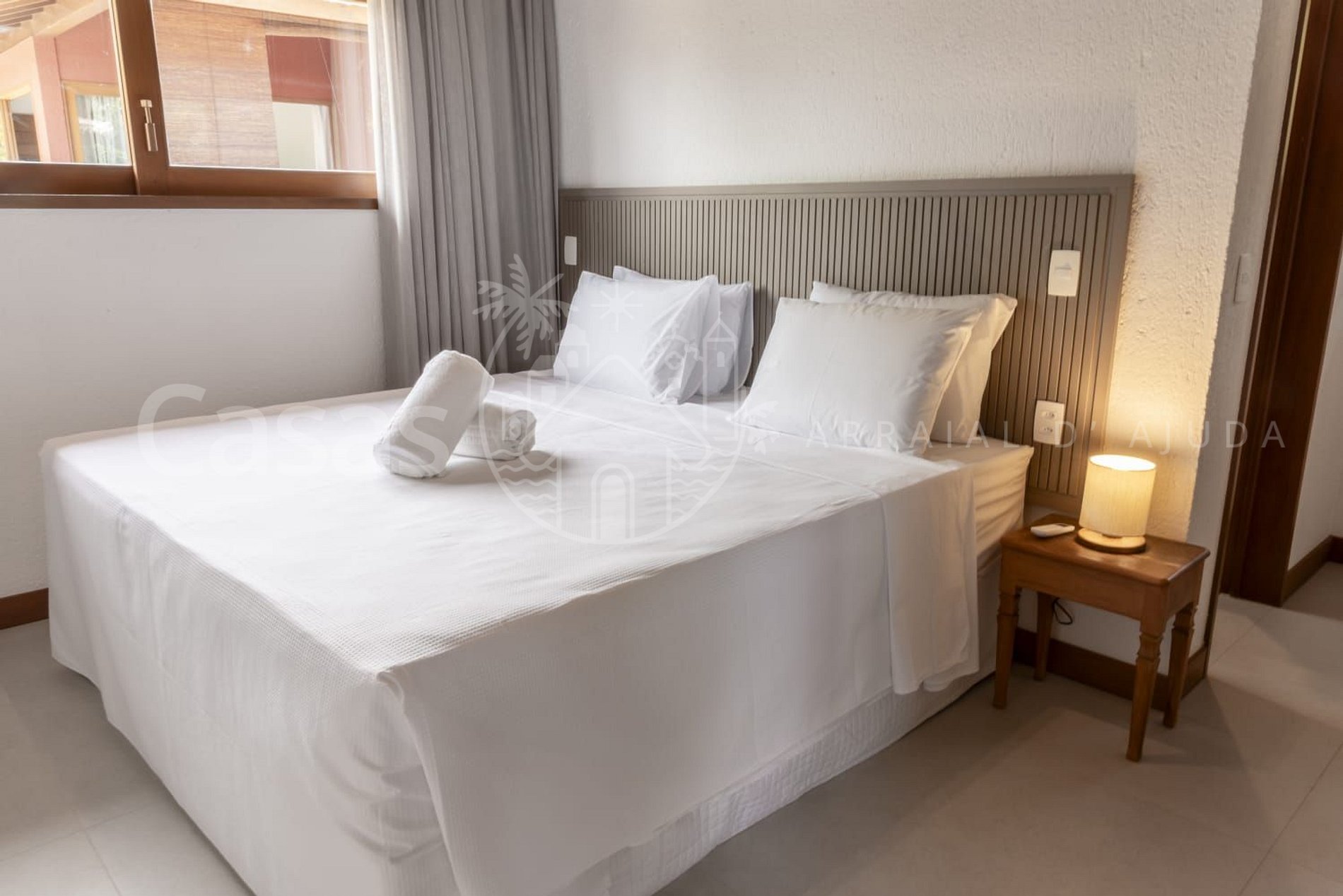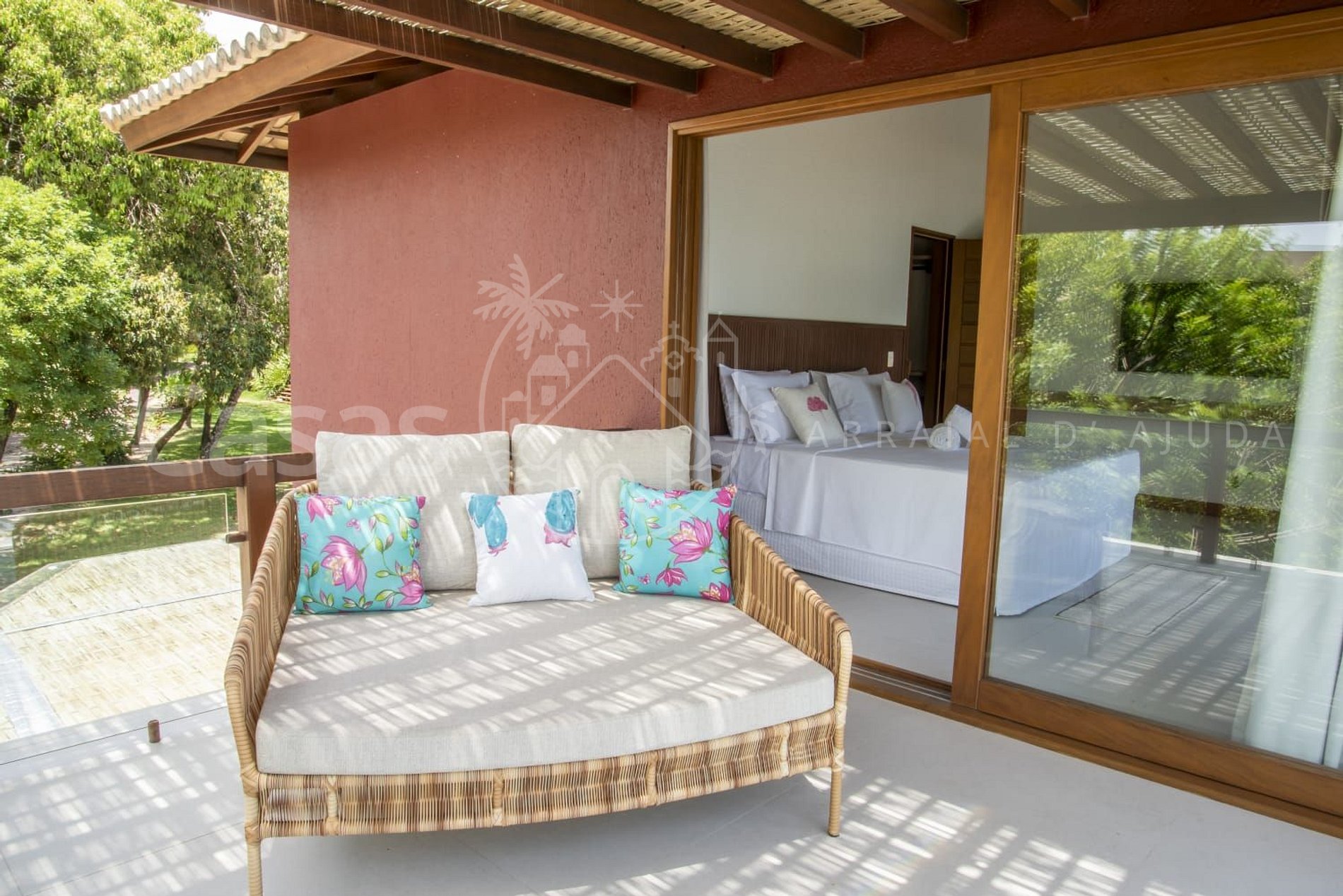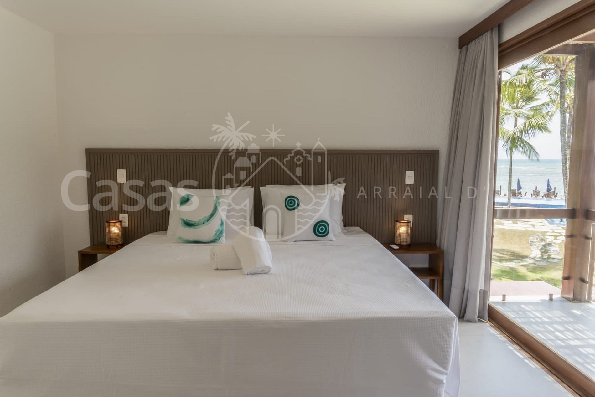 Esta linda propriedade com 6 suítes king size sendo a principal suíte frente mar, todas amplas e climatizadas, sendo 1 suítes no piso térreo, três suítes no piso superior e 2 bangalôs independentes, com ambientes confortáveis e aconchegantes, oferece acomodação para 12 hóspedes com estrutura impecável.