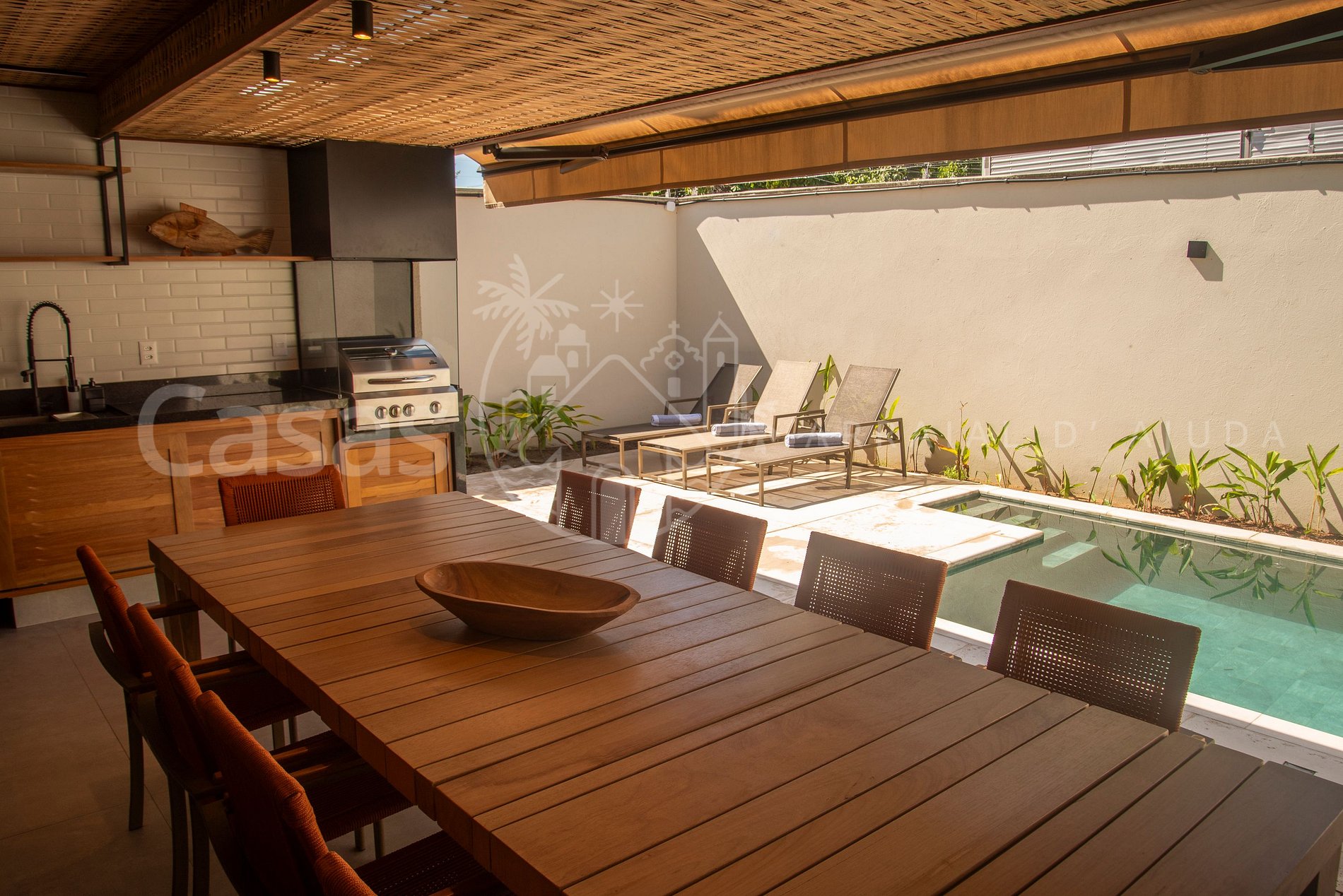 Casa em lindo condomínio com privacidade total e piscina exclusiva. A Casa Edu Angatu é uma linda propriedade com 4 suítes, sendo uma delas em piso térreo, totalmente climatizada, moderna, recém construída e totalmente equipada.
