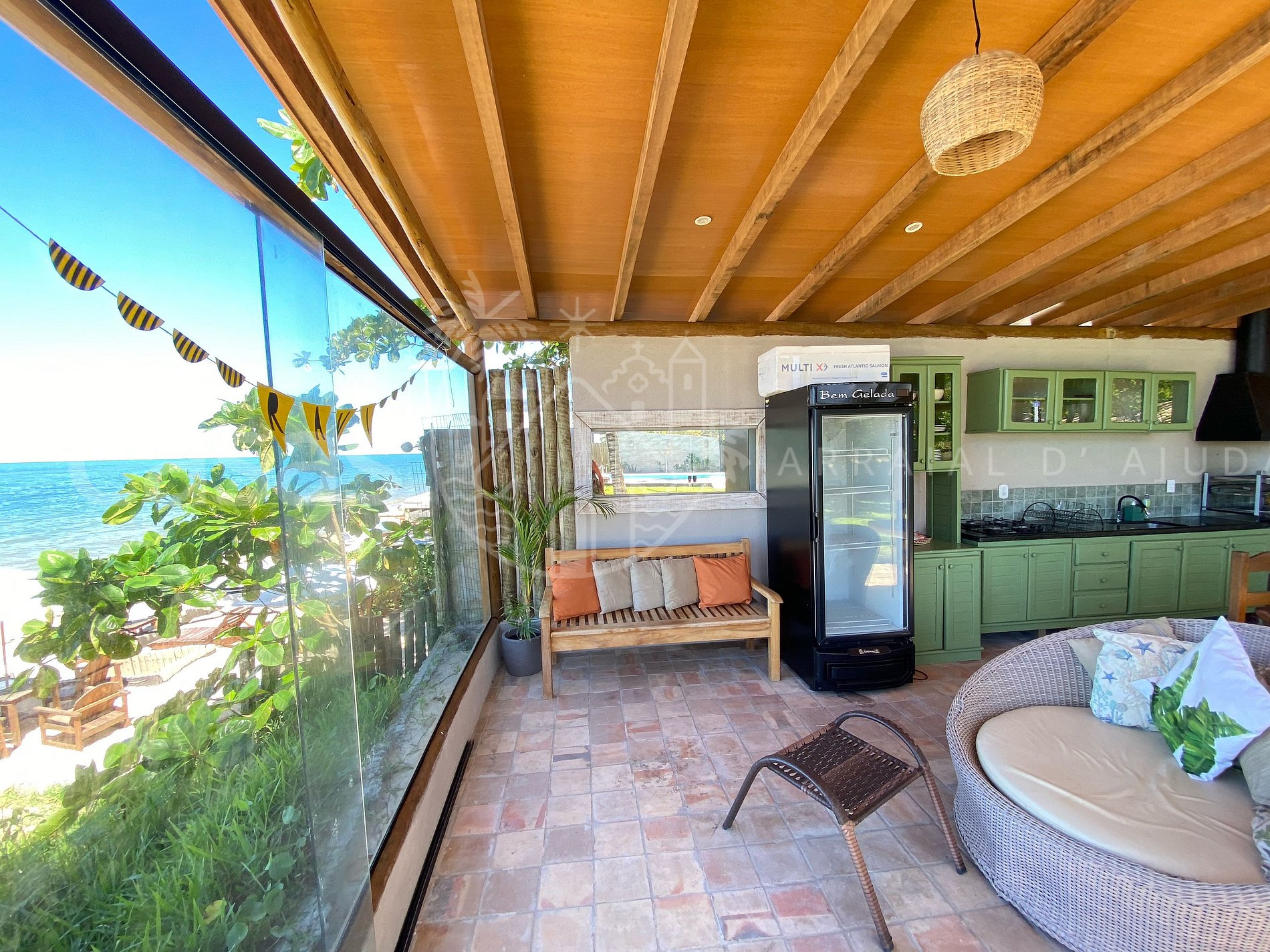 Ampla e confortável casa na beira da Praia de Araçaípe. São 6 suítes bem espaçosas, todos climatizadas. Sala de Tv, estar e sala jantar. Varanda coberta com área de churrasco de frente para a praia. Total conforto em uma linda propriedade!