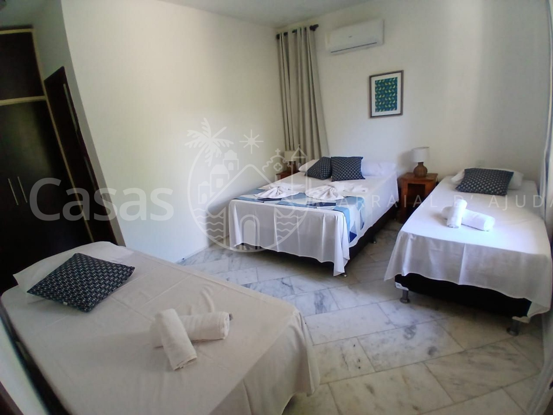 Suíte 2 - Piso térreo, 1 cama casal e 1 cama solteiro, ar-condicionado, armário, vista mar
