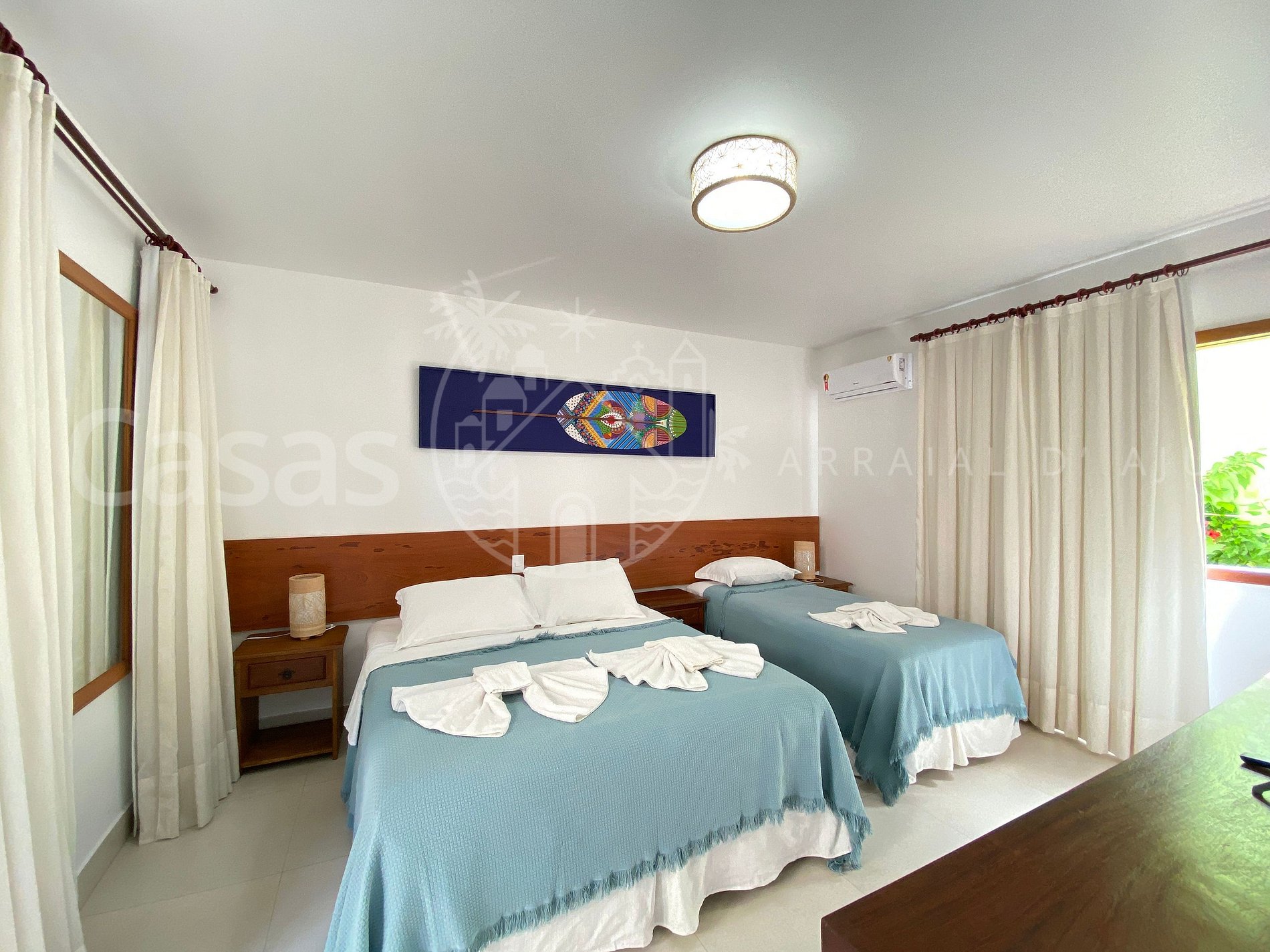 Suíte 3: Piso térreo - Cama queen, cama solteiro, ar-condicionado, tv e frigobar