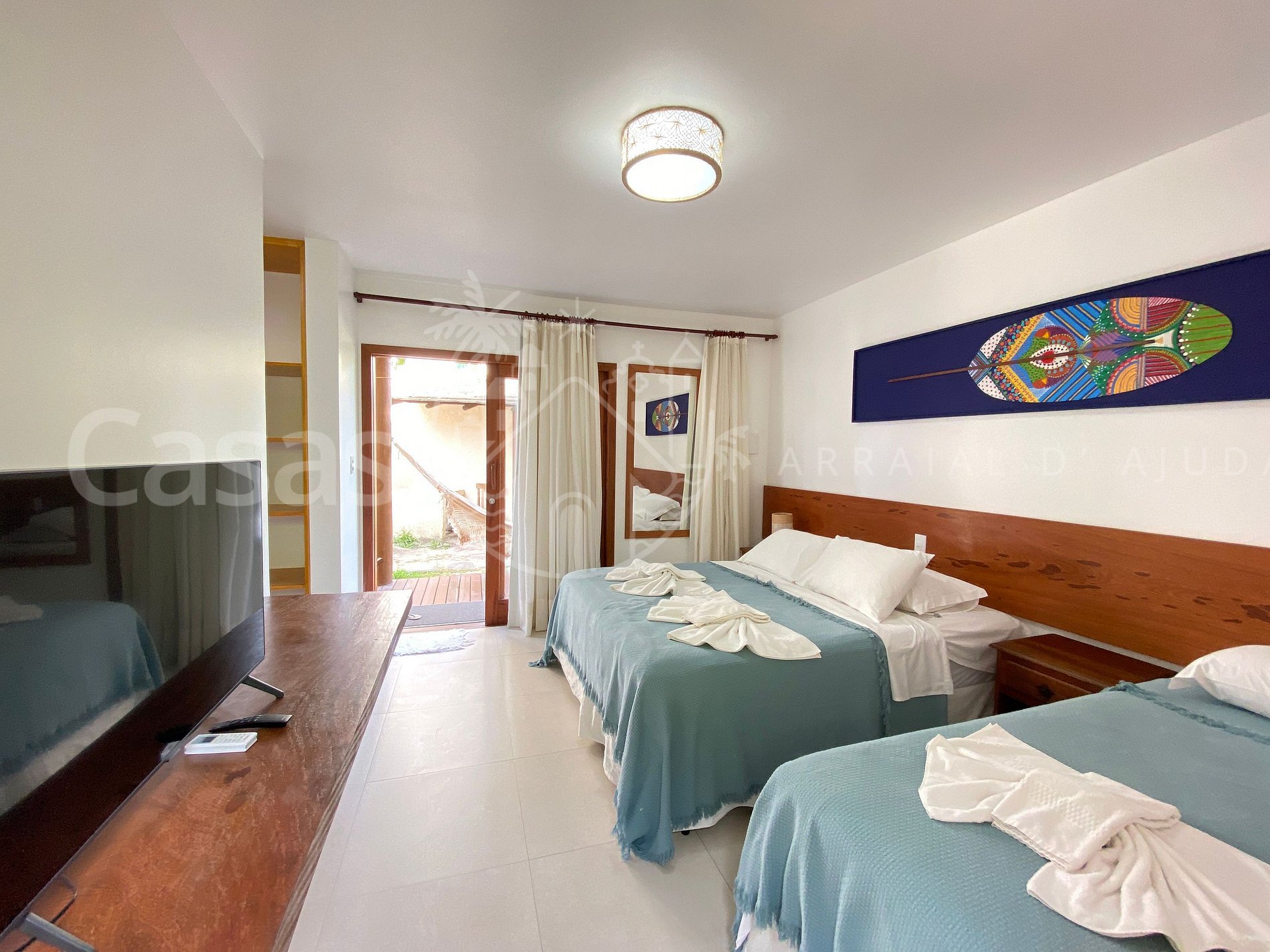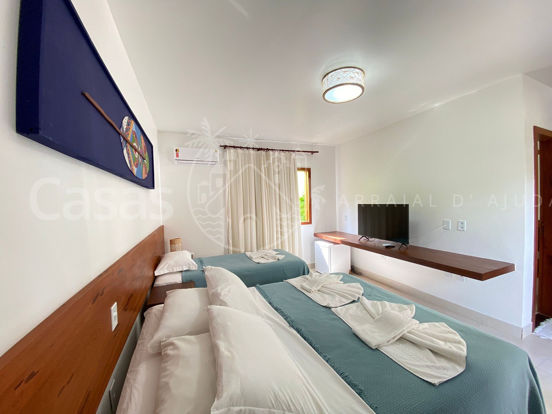Suíte 3: Piso térreo - Cama queen, cama solteiro, ar-condicionado, tv e frigobar
