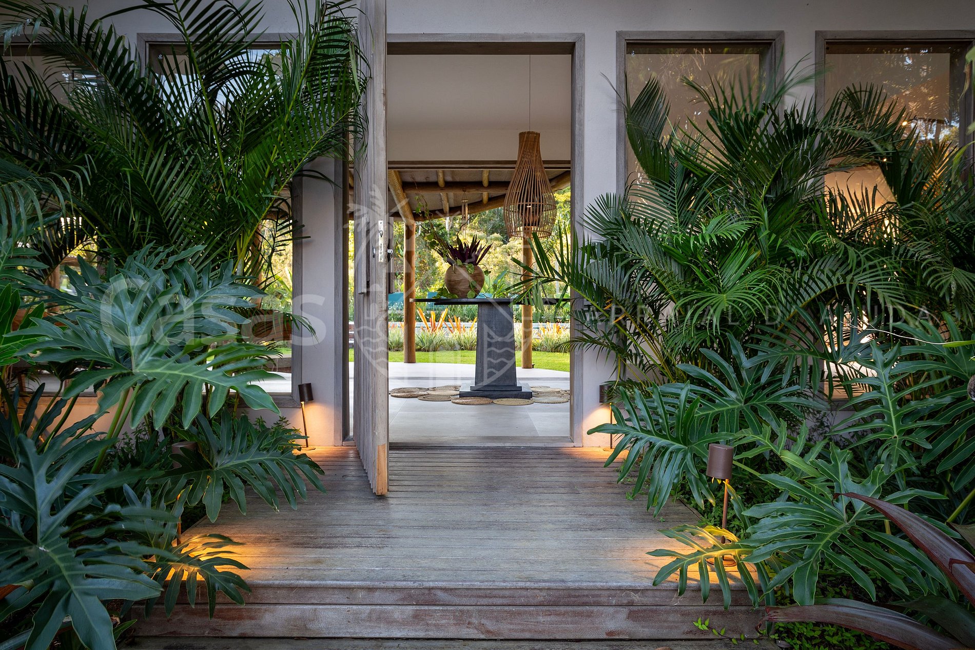 Do lado de fora, a área verde que cerca a casa não só encanta os olhos com sua beleza, como também traz a tranquilidade e o frescor que só a natureza pode proporcionar. Ao se hospedar na Villa da Lua, o hóspede desfruta não apenas de uma estadia confortável, mas de uma experiência completa de descanso e conexão com o ambiente, em uma das regiões mais exclusivas e privilegiadas.