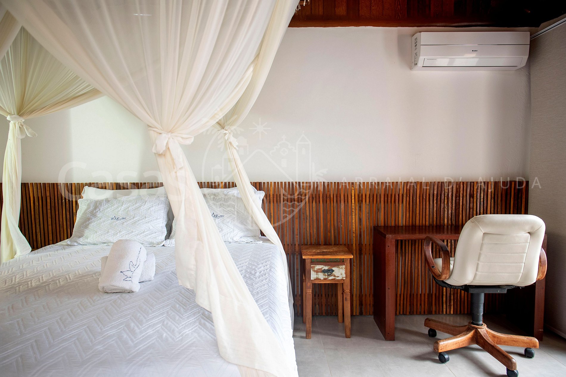 Suíte 2 – Piso térreo: cama queen (ou 2 solteiro), ar-condicionado, armário