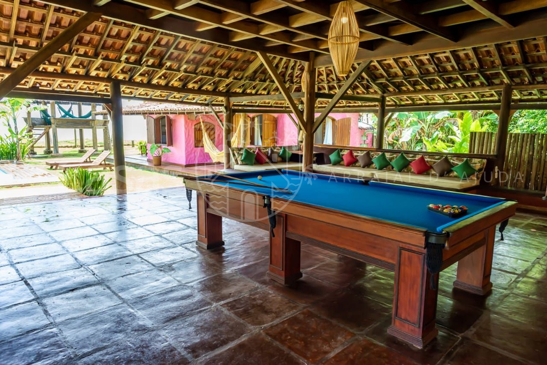A área de lazer é um prazer à parte, um lindo jardim tropical com lago de carpas, piscina e lounge com redes, sofás, mesa de jantar, mesa de sinuca e standup com coletes salva vidas, que proporciona excelentes momentos aos hóspedes.