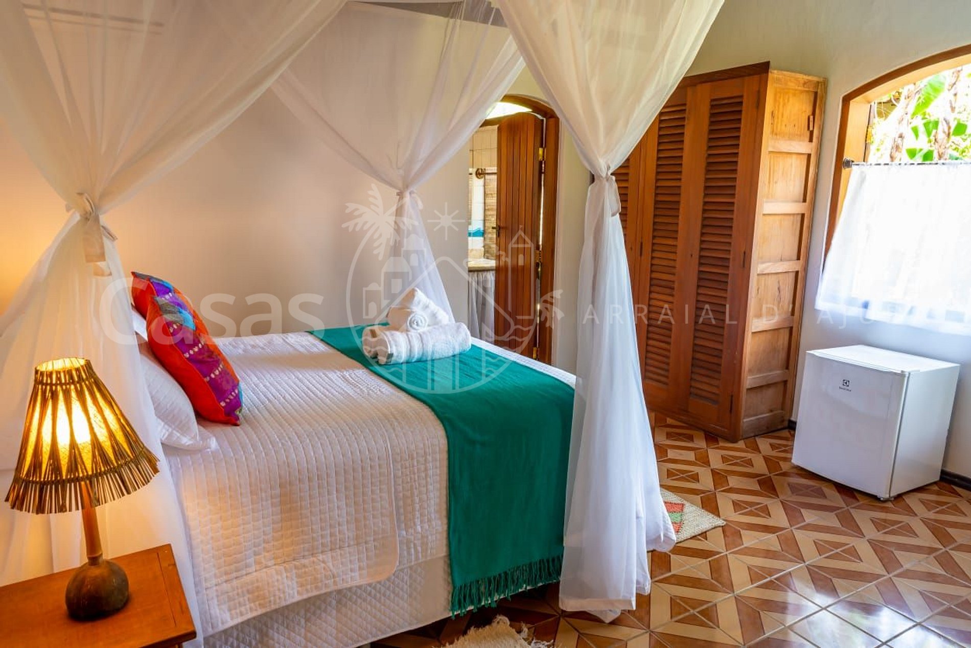 Localizada entre as praias do Apaga Fogo e Araçaípe, a Casa Wari acomoda até 16 pessoas em suas 6 bem decoradas suítes.