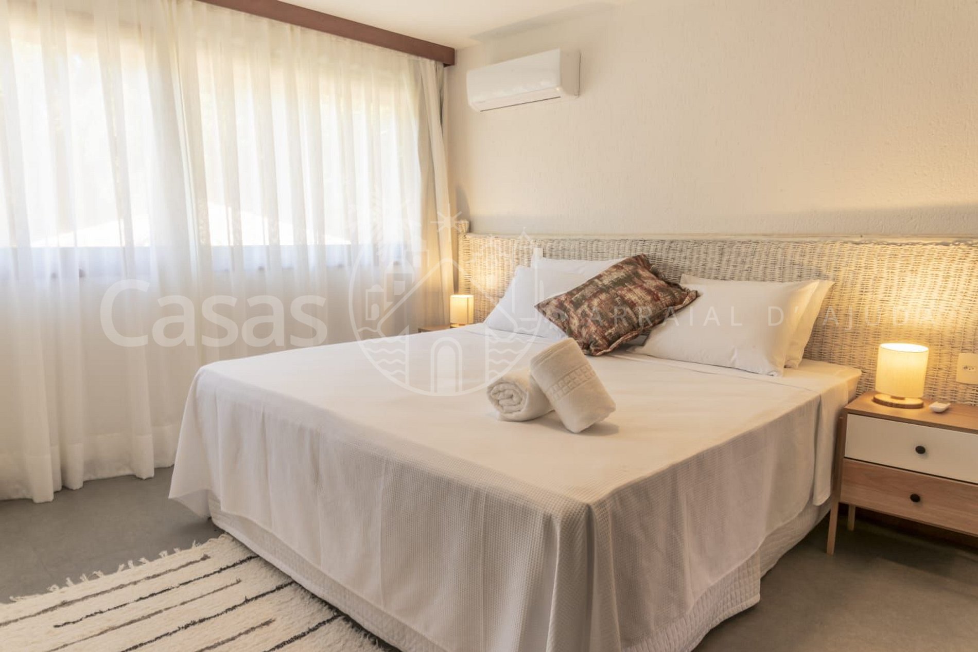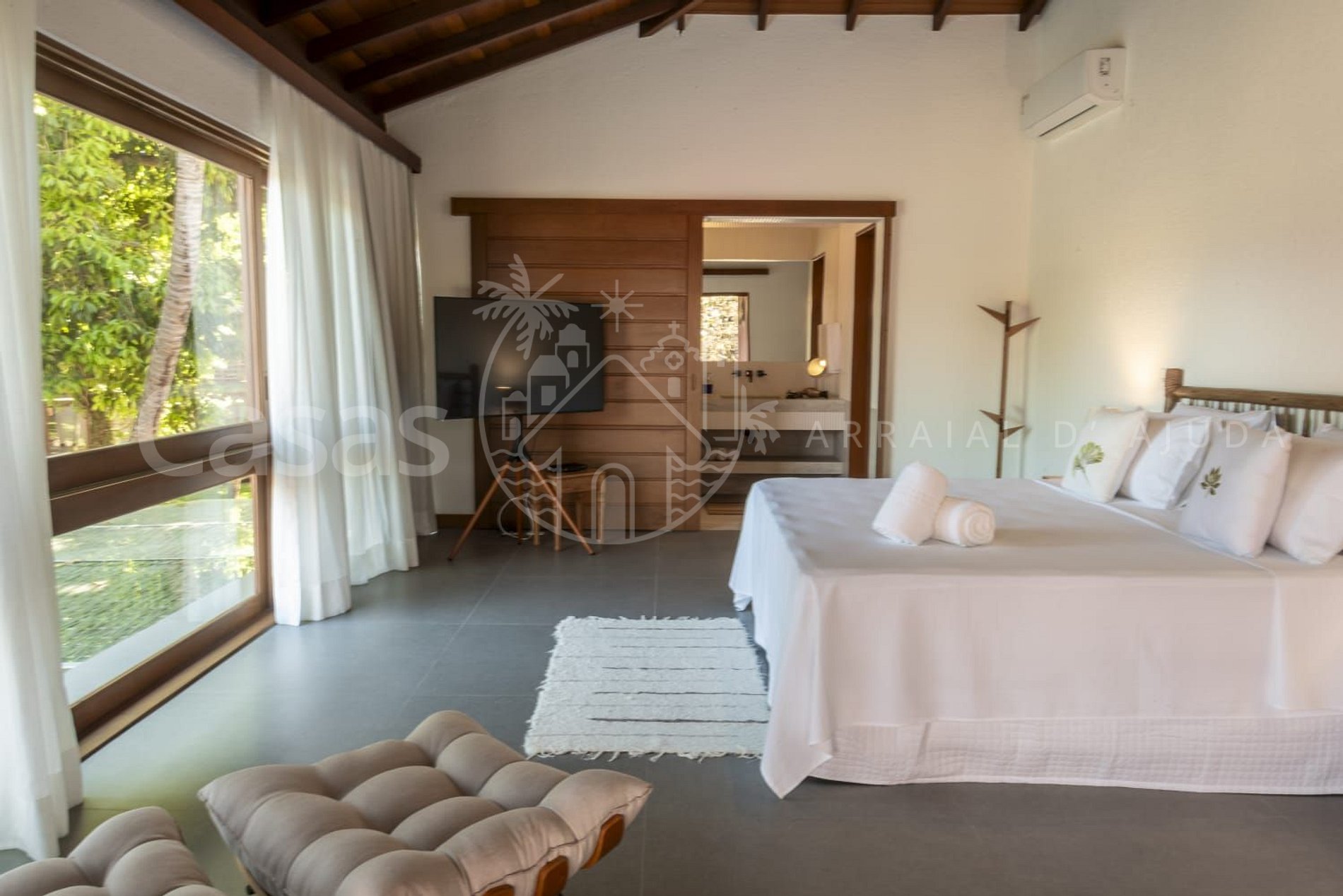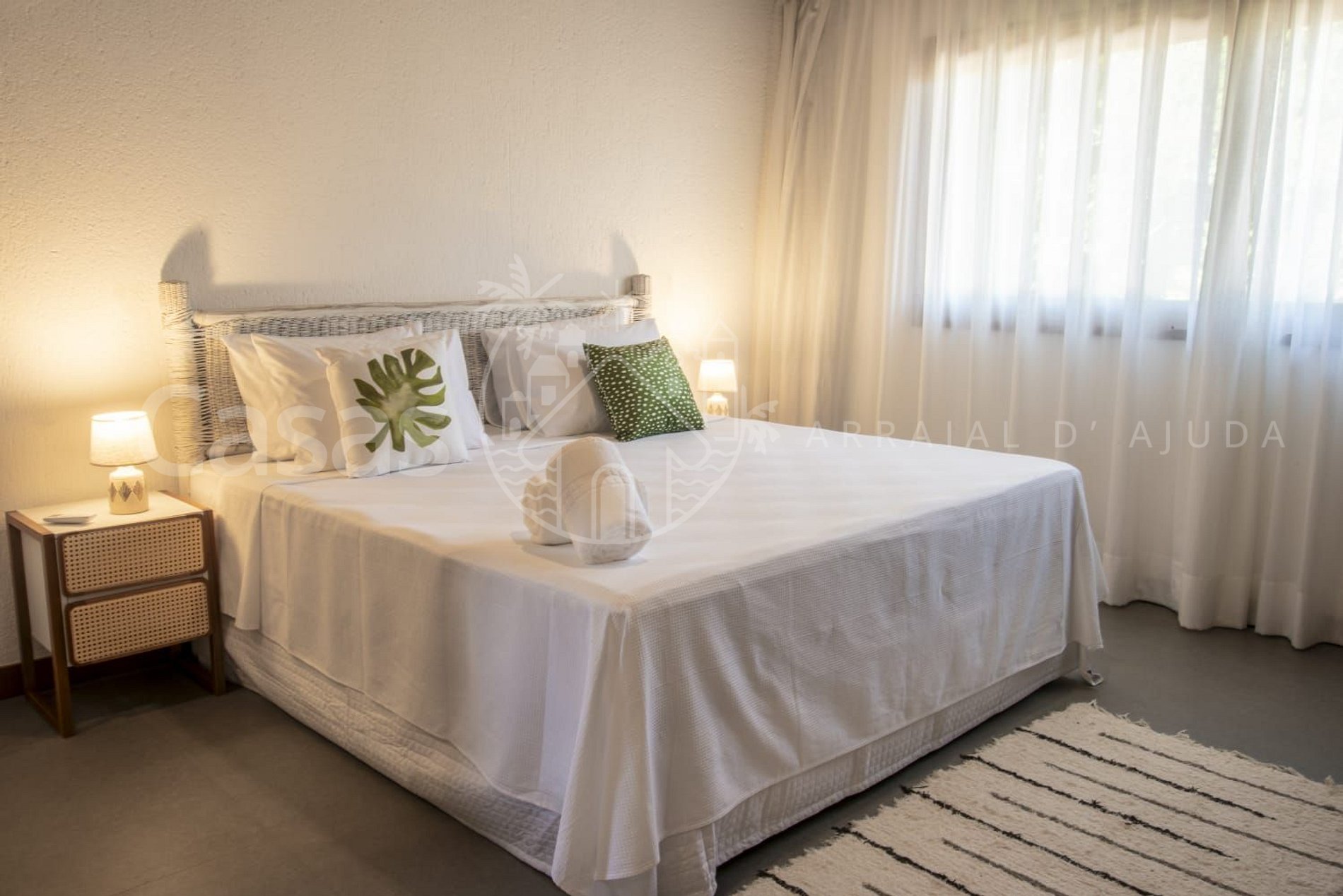 Esta linda propriedade com 7 suítes king size, todas amplas e climatizadas, com ambientes confortáveis e aconchegantes, oferece acomodação para 14 hóspedes com estrutura impecável.