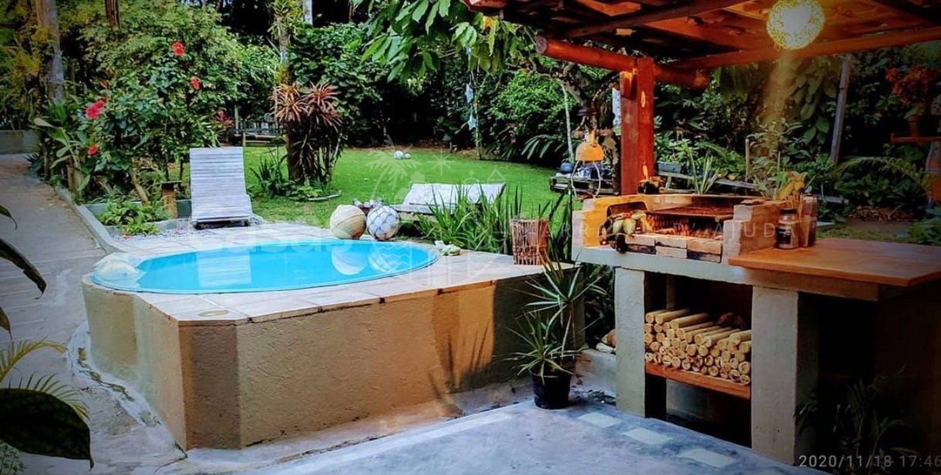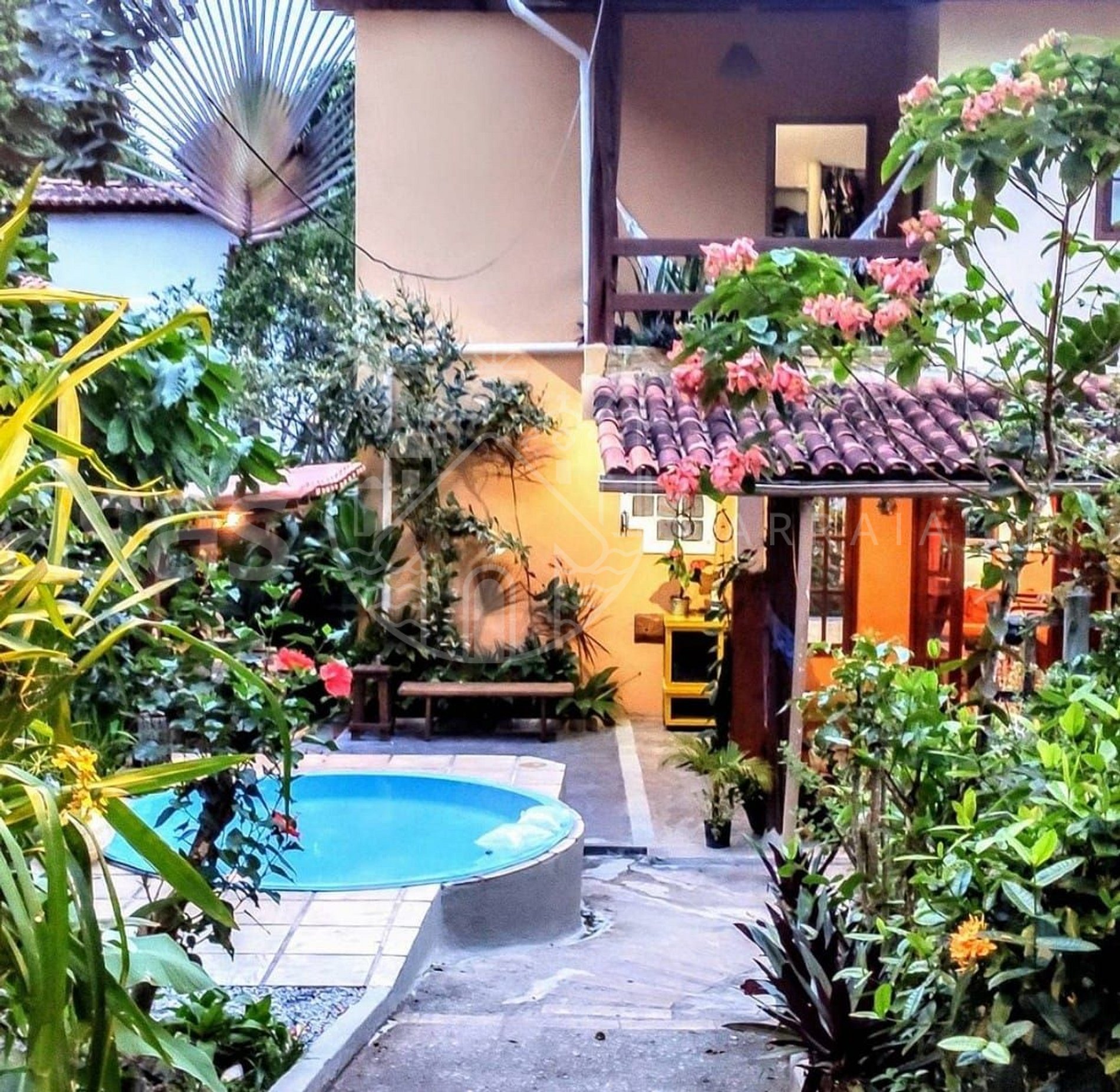 A Casa da Roro tem um ambiente acolhedor, com piscina e espaço de lazer com churrasqueira.