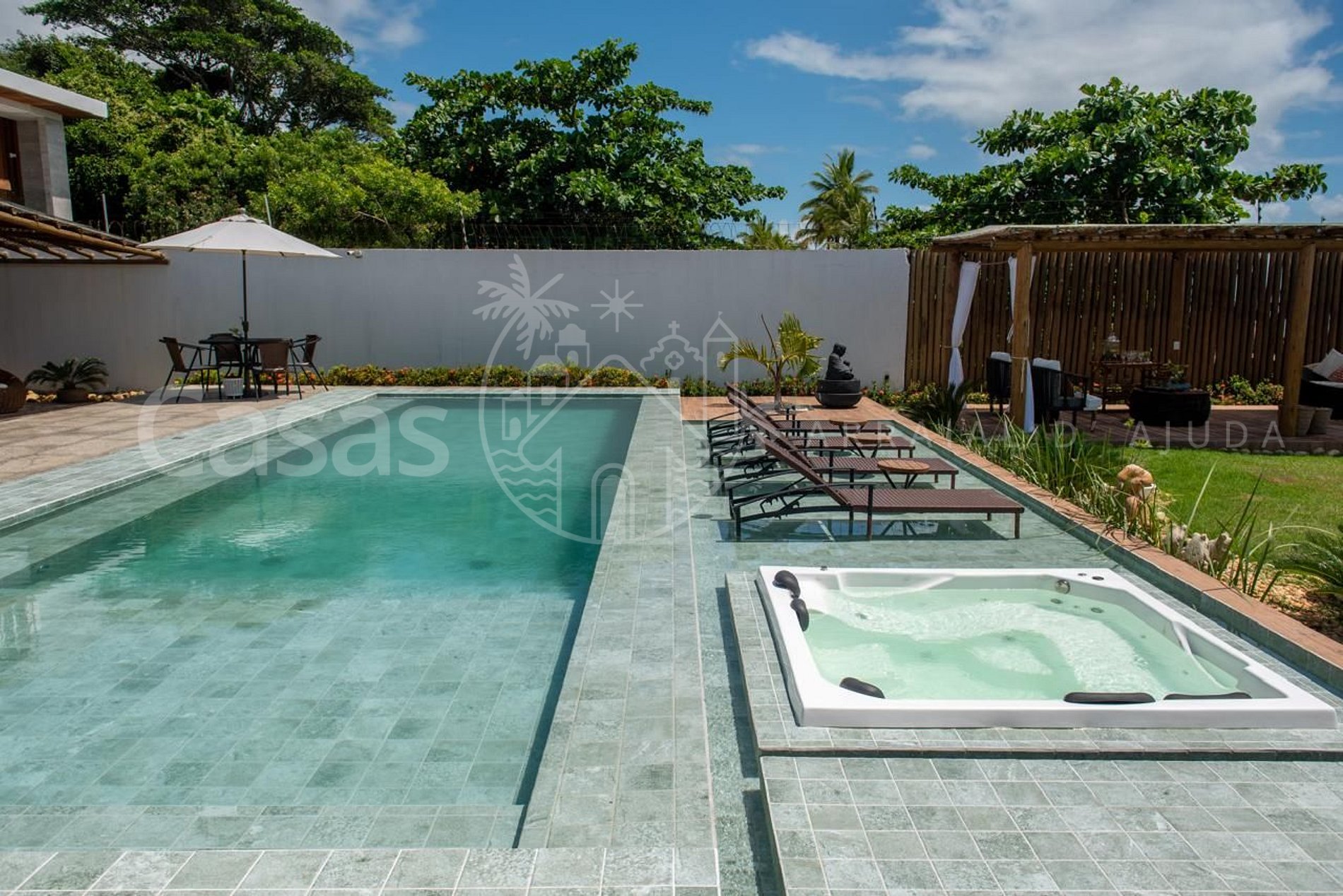 • Piscina com hidromassagem externa para 4 a 6 pessoas.