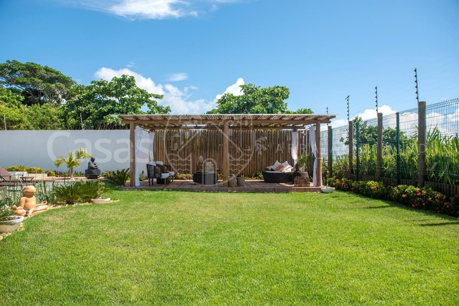 A casa é totalmente mobiliada com mobiliário de primeira linha, enxoval completo de alta qualidade, incluindo roupas de cama premium, toalhas e toalhões.