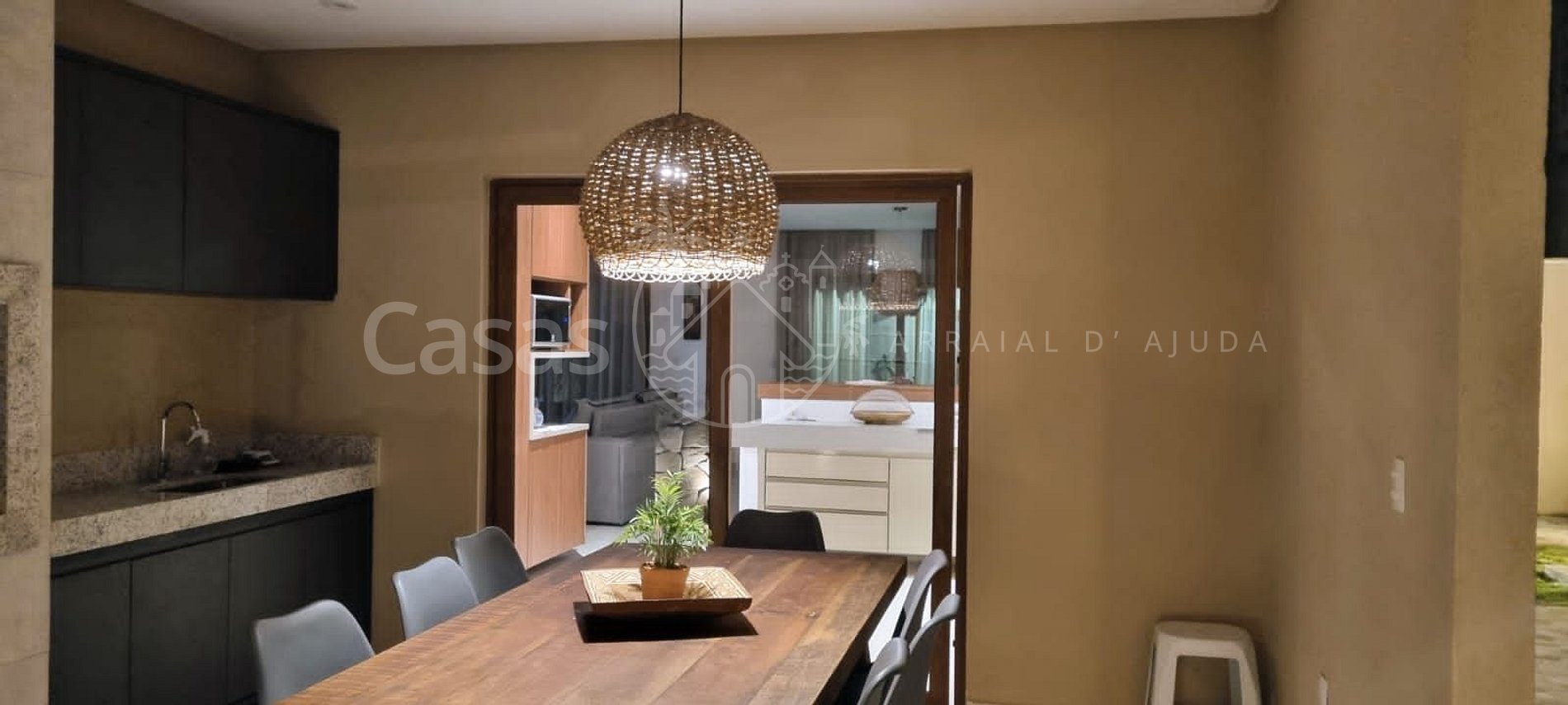 A casa tem amplo espaço interno, com piscina também exclusiva e espaço para churrasco.A Casa tem sala espaçosa com ambiente de estar e jantar lindamente decorados, cozinha ampla e equipada, moderna e multifuncional. Varanda gourmet privativa, com mesa de refeições e um ambiente muito agradável, tem uma linda piscina exclusiva e área de lazer com churrasqueira.
