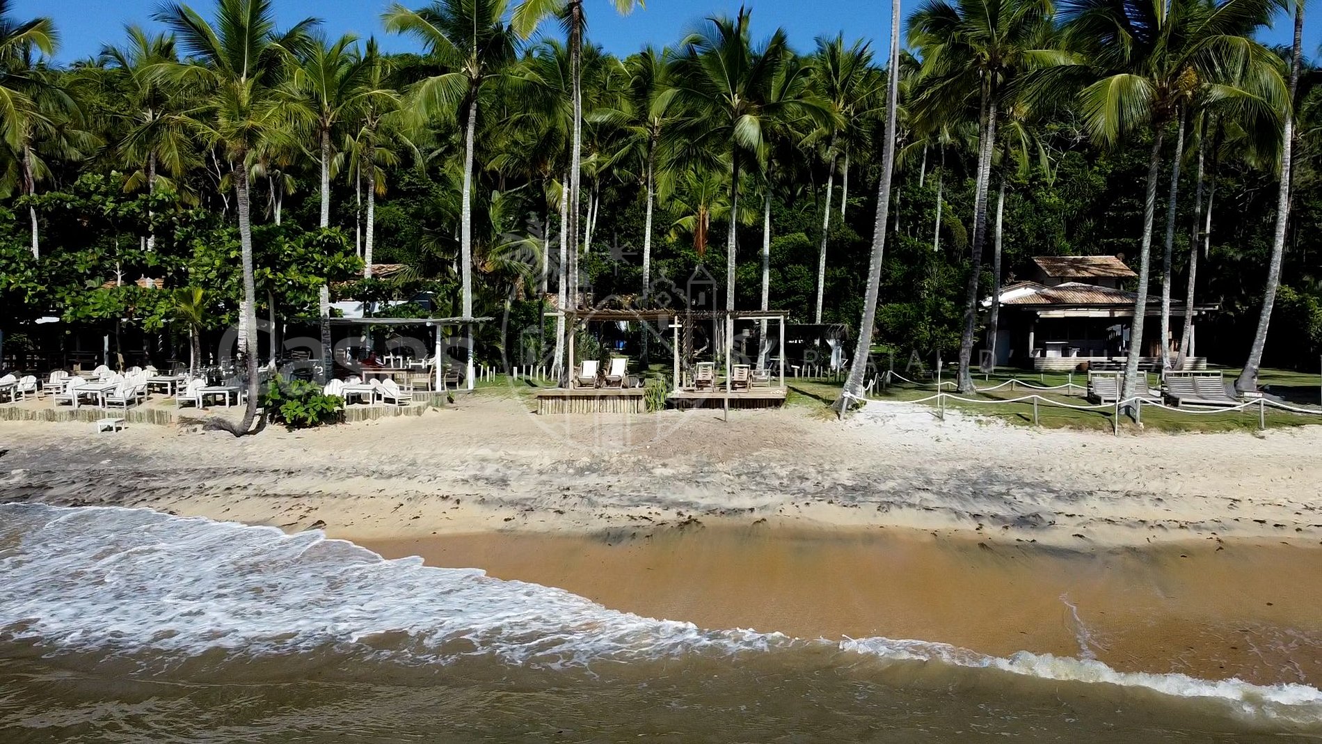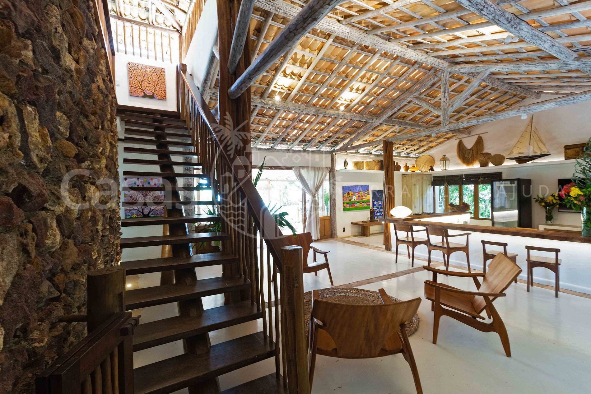 A casa é toda integrada, com extensa varanda com vista para a piscina, jardim e mar. Cozinha de apoio completa com fogão industrial, duas geladeiras com freezer e cervejeira.