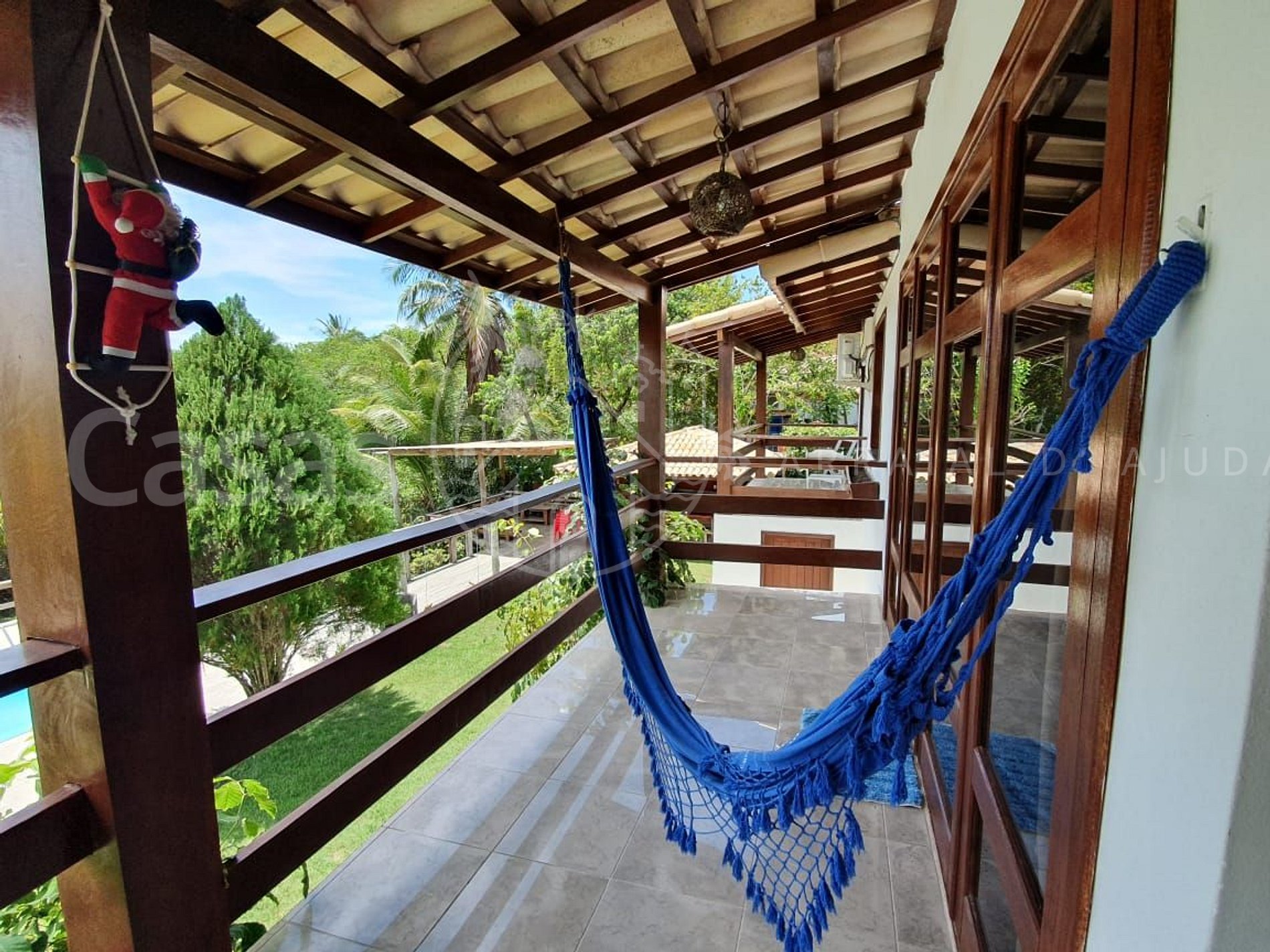 Varanda com rede ao redor da casa