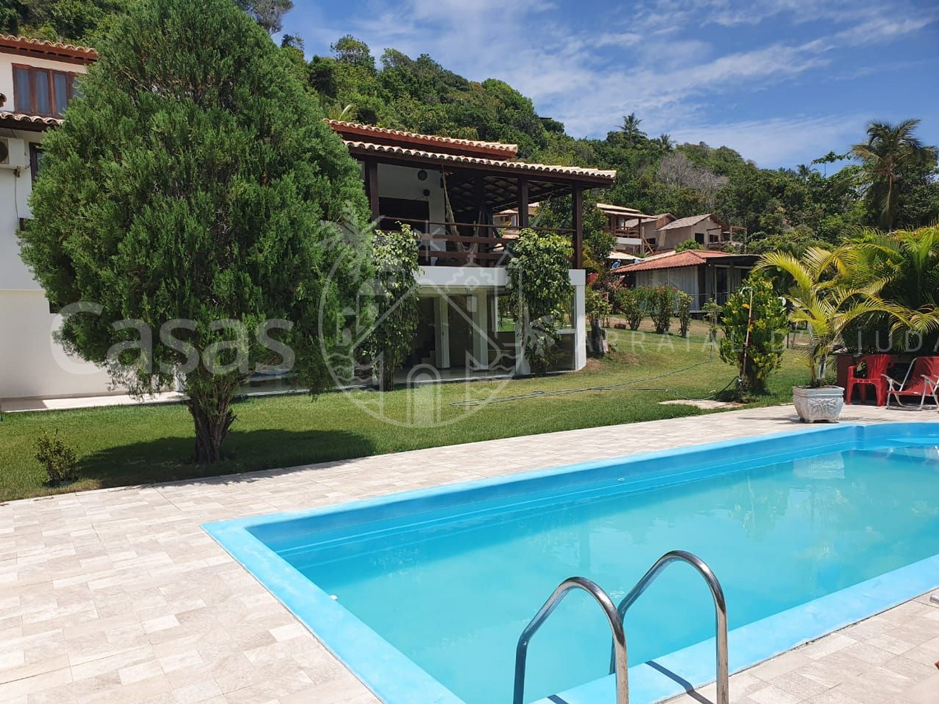 Linda casa na praia do Mucugê, vista para o mar e total infraestrutura de lazer com piscina, espaço confortável de churrasqueira.