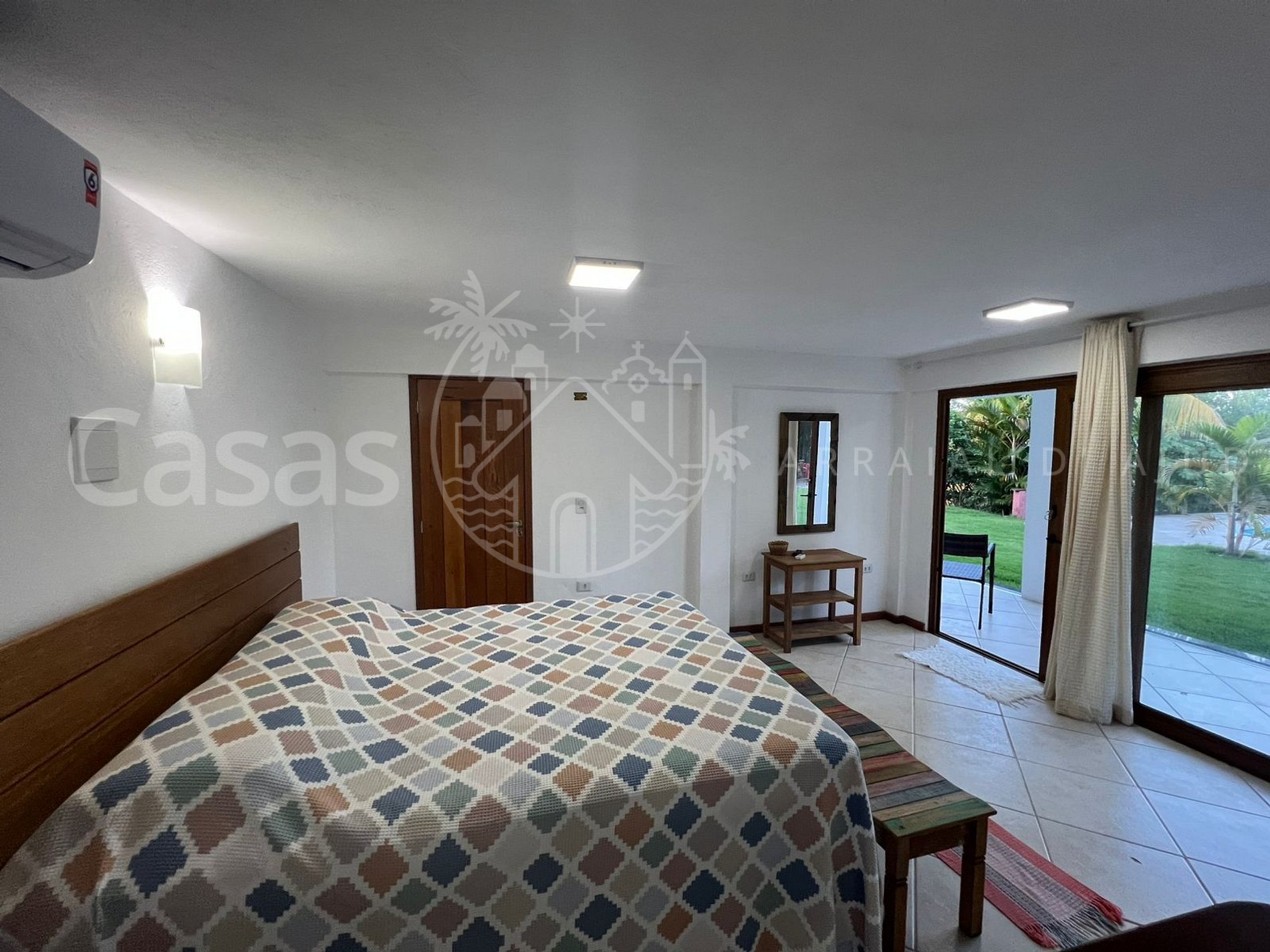 Suíte 4 - Cama casal queen, ar-condicionado, vista piscina