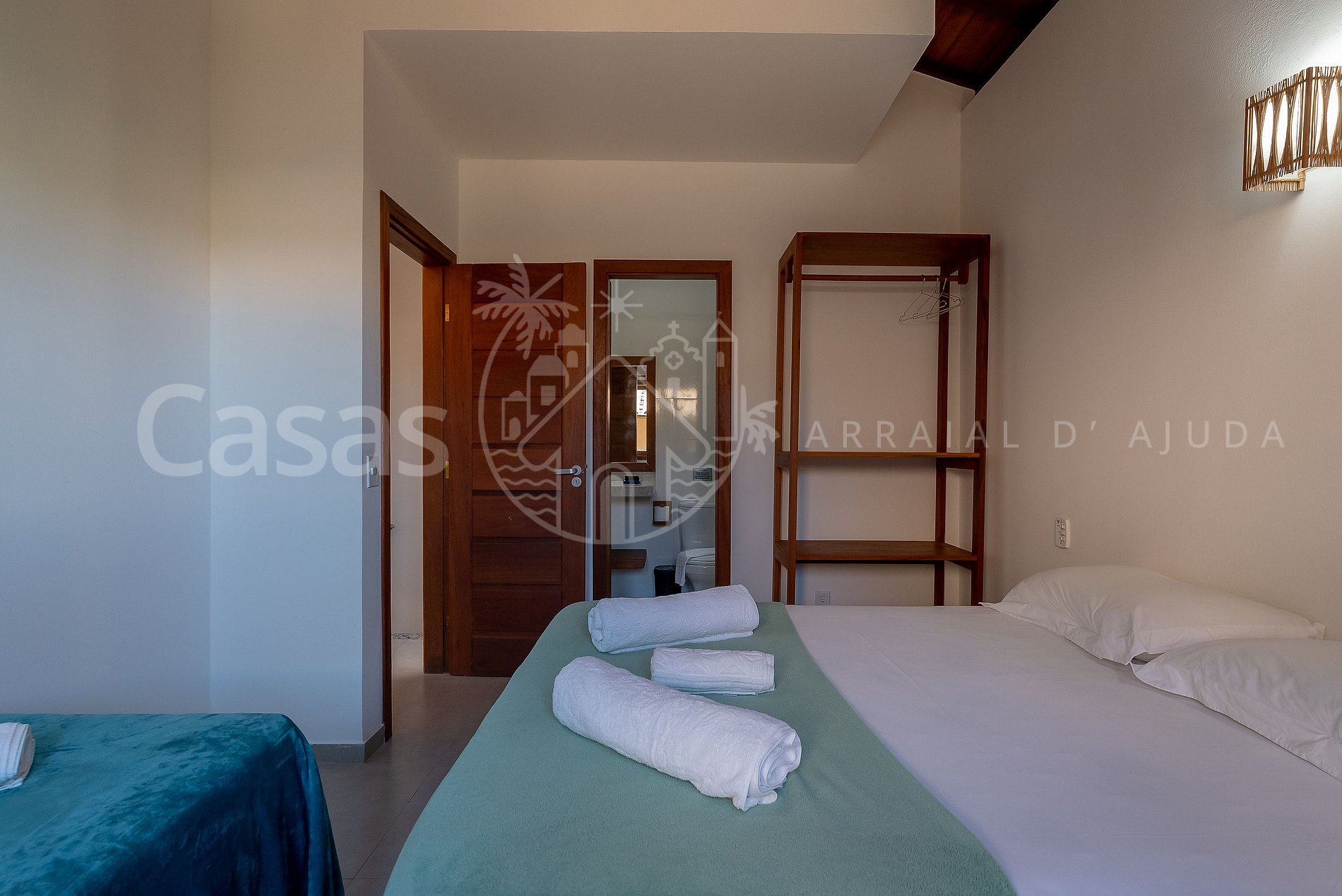 Suíte 2: Piso Superior: Suíte cama casal, cama solteiro, ar-condicionado