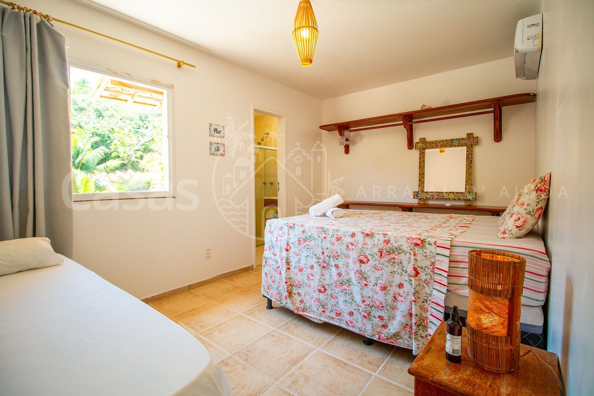 Suíte 2: Suíte cama casal, cama solteiro, ar-condicionado, banheiro
