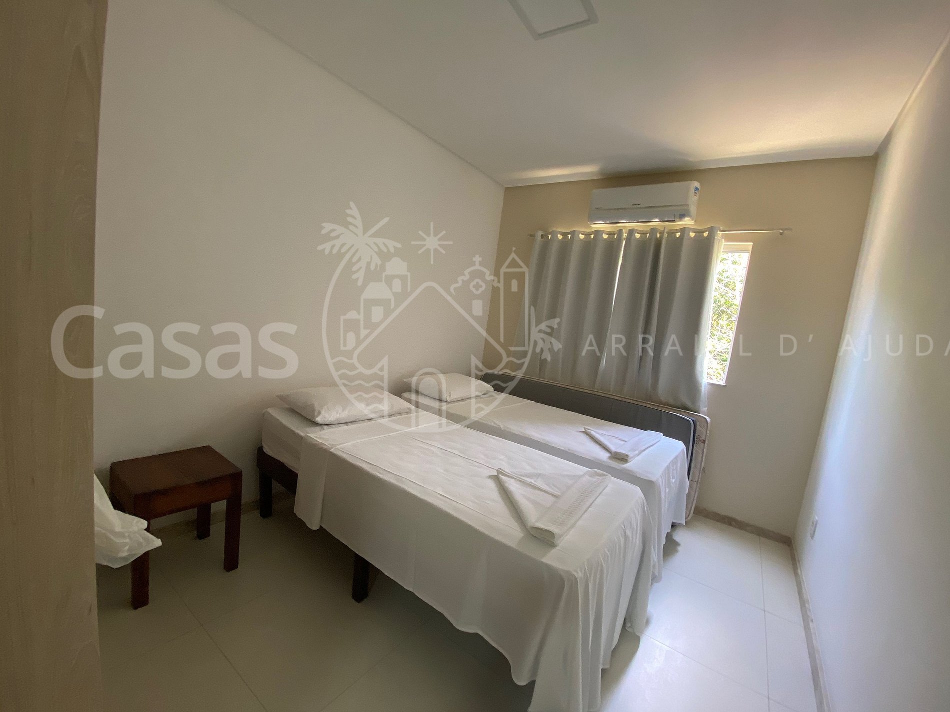 Quarto 3 - andar superior: 2 camas solteiro (ou 1 casal), ar-condicionado, armários