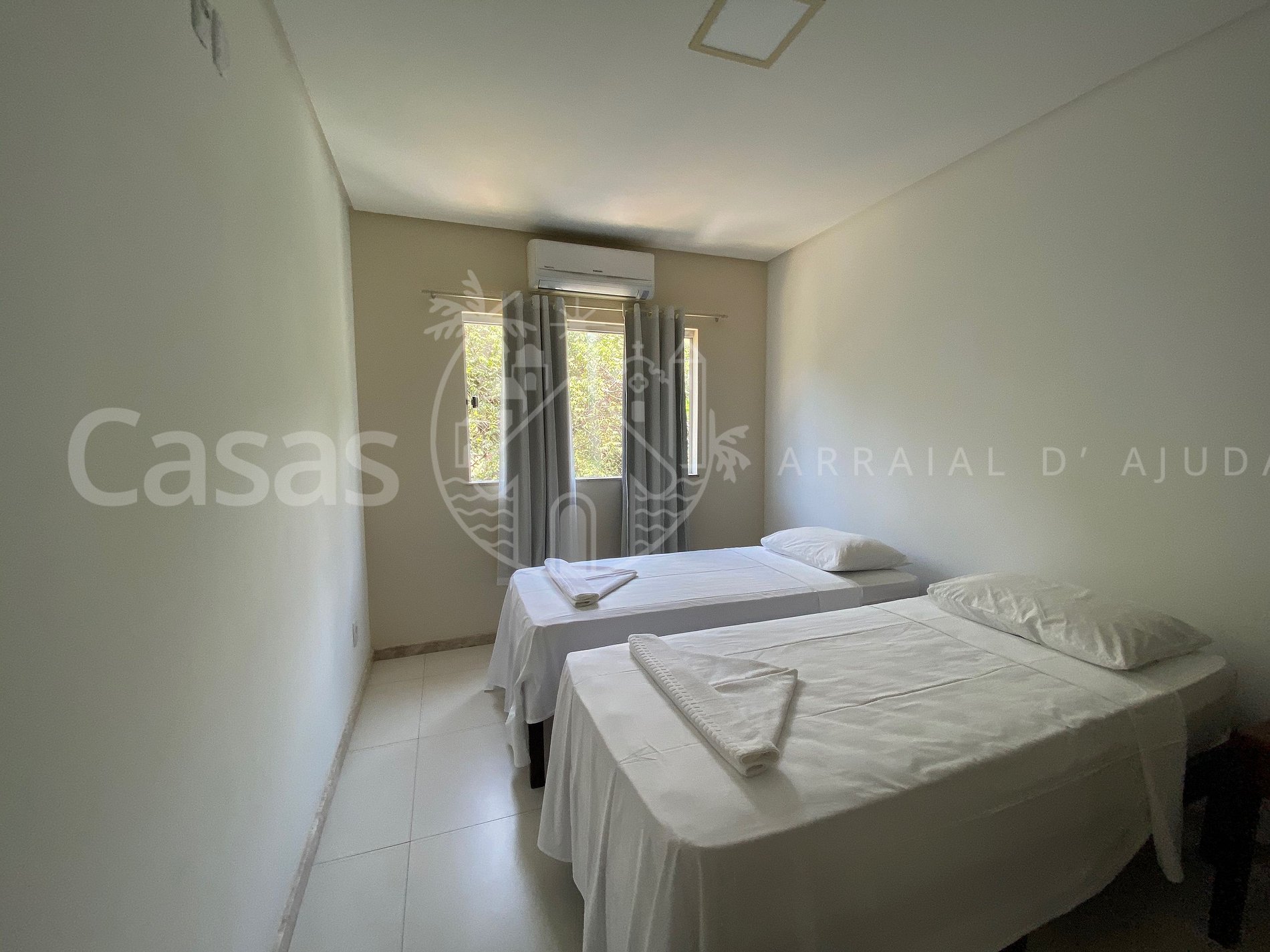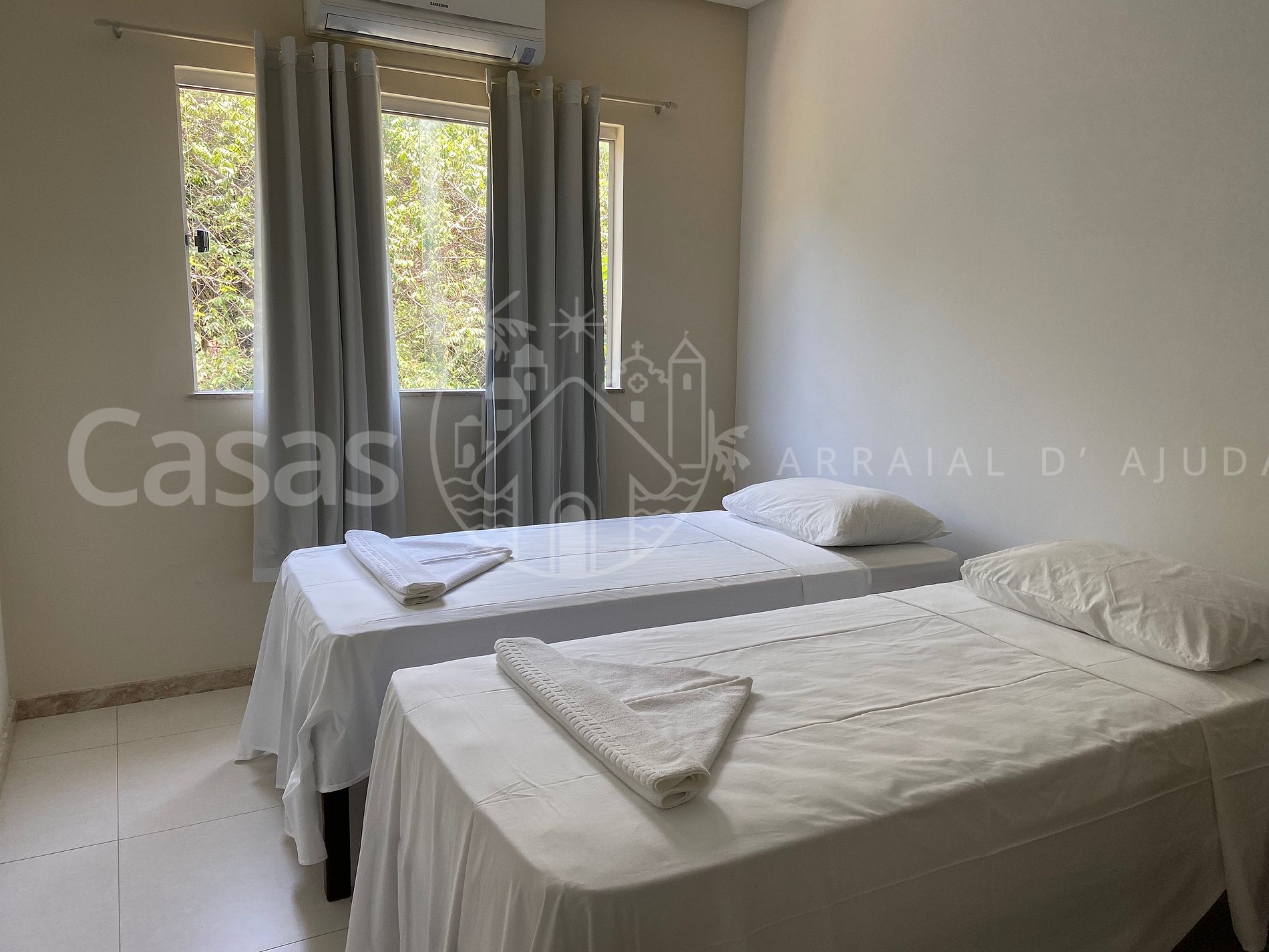 Quarto 3 - andar superior: 2 camas solteiro (ou 1 casal), ar-condicionado, armários