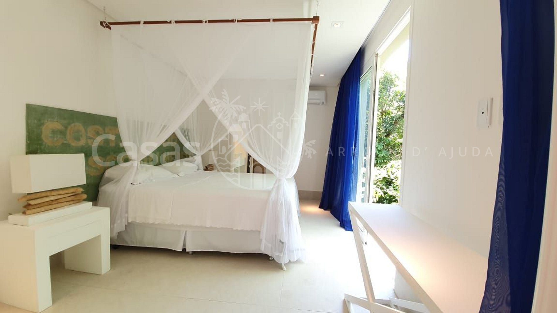 Suíte 4 - Cama king, frigobar, ar-condicionado e closet com vista plena para o mar