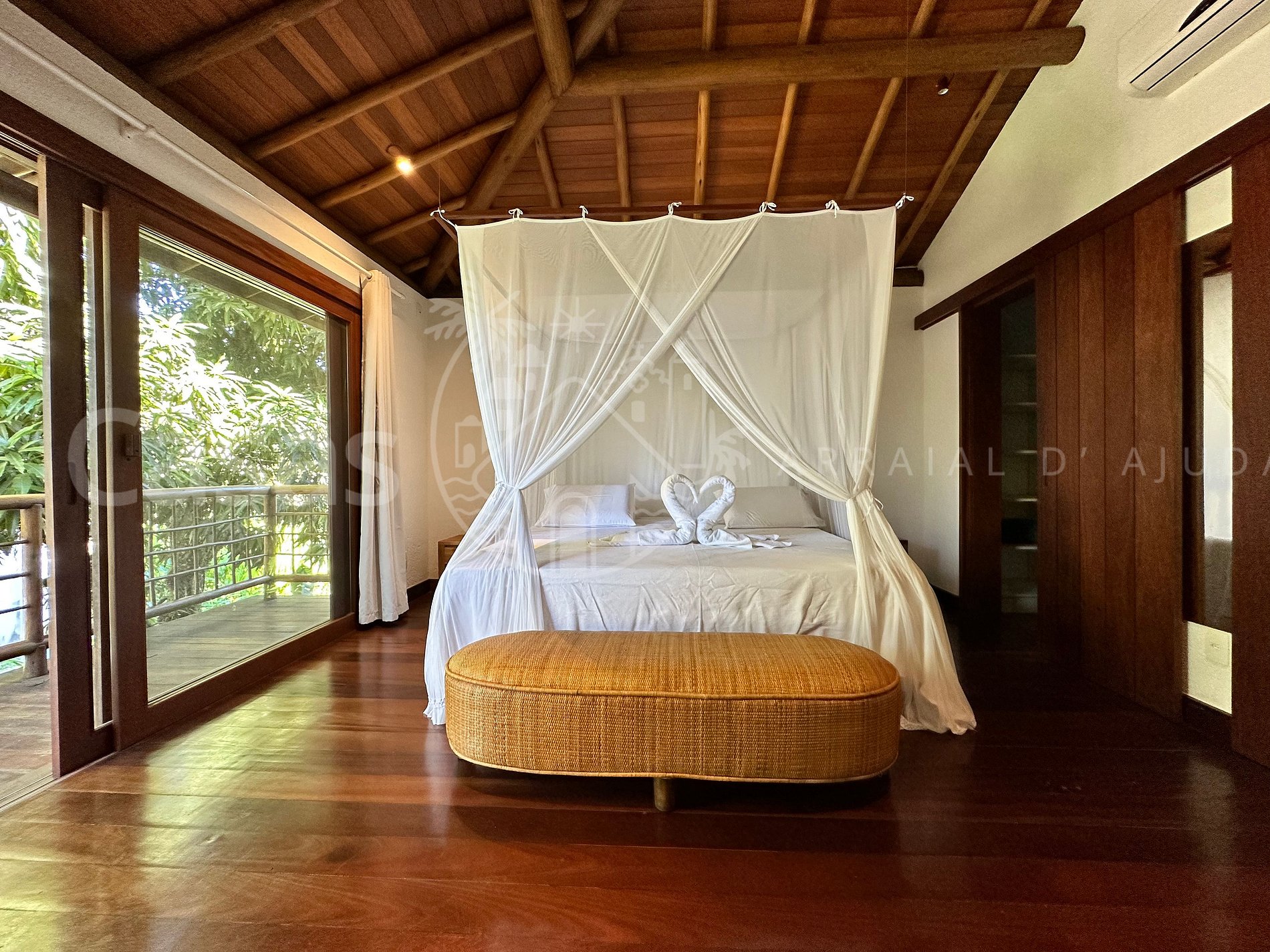 Suíte master 1 – Piso superior – suíte master, cama super king size, Smart TV, ar-condicionado, frigobar e varanda ampla