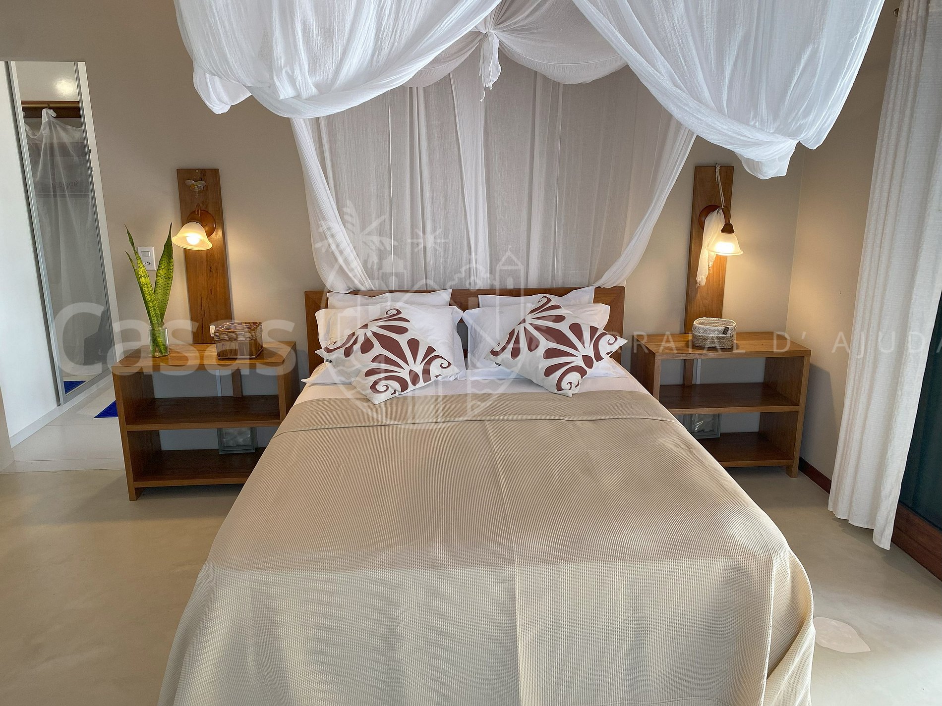 São 3 suítes espaçosas, que acomodam até 8 pessoas, todas com ar-condicionado, para garantir noites tranquilas e confortáveis até nos dias mais quentes da Bahia.