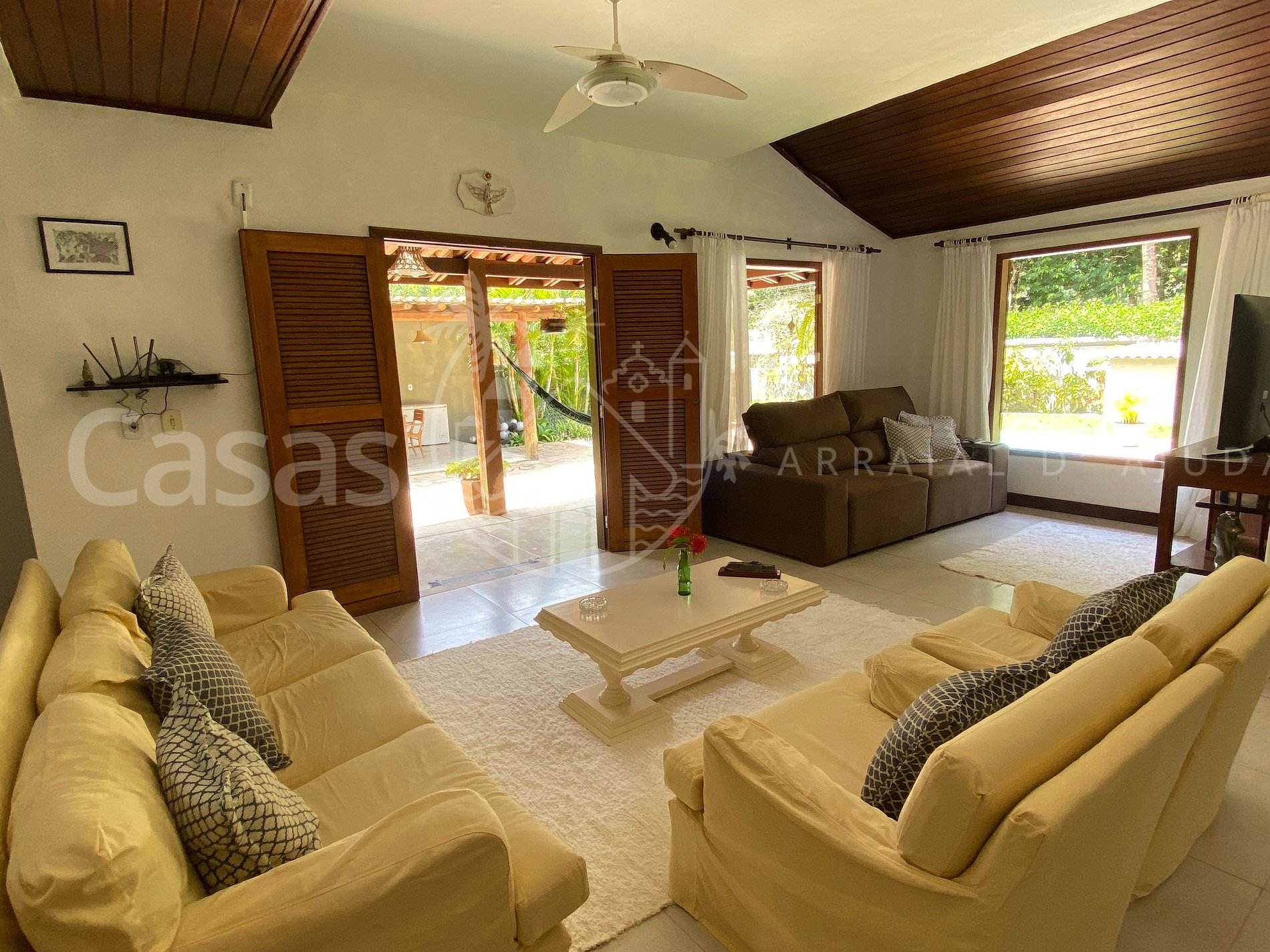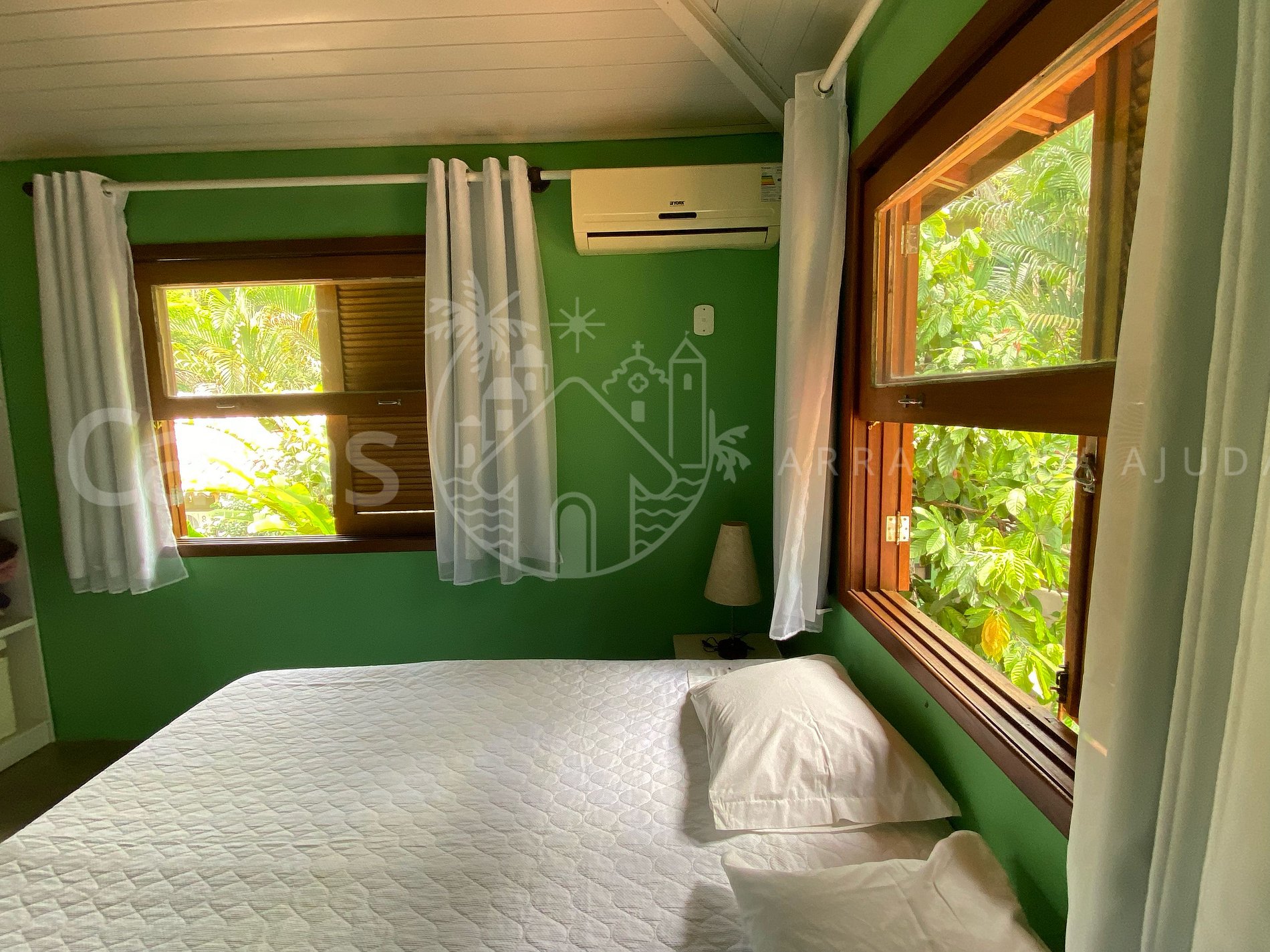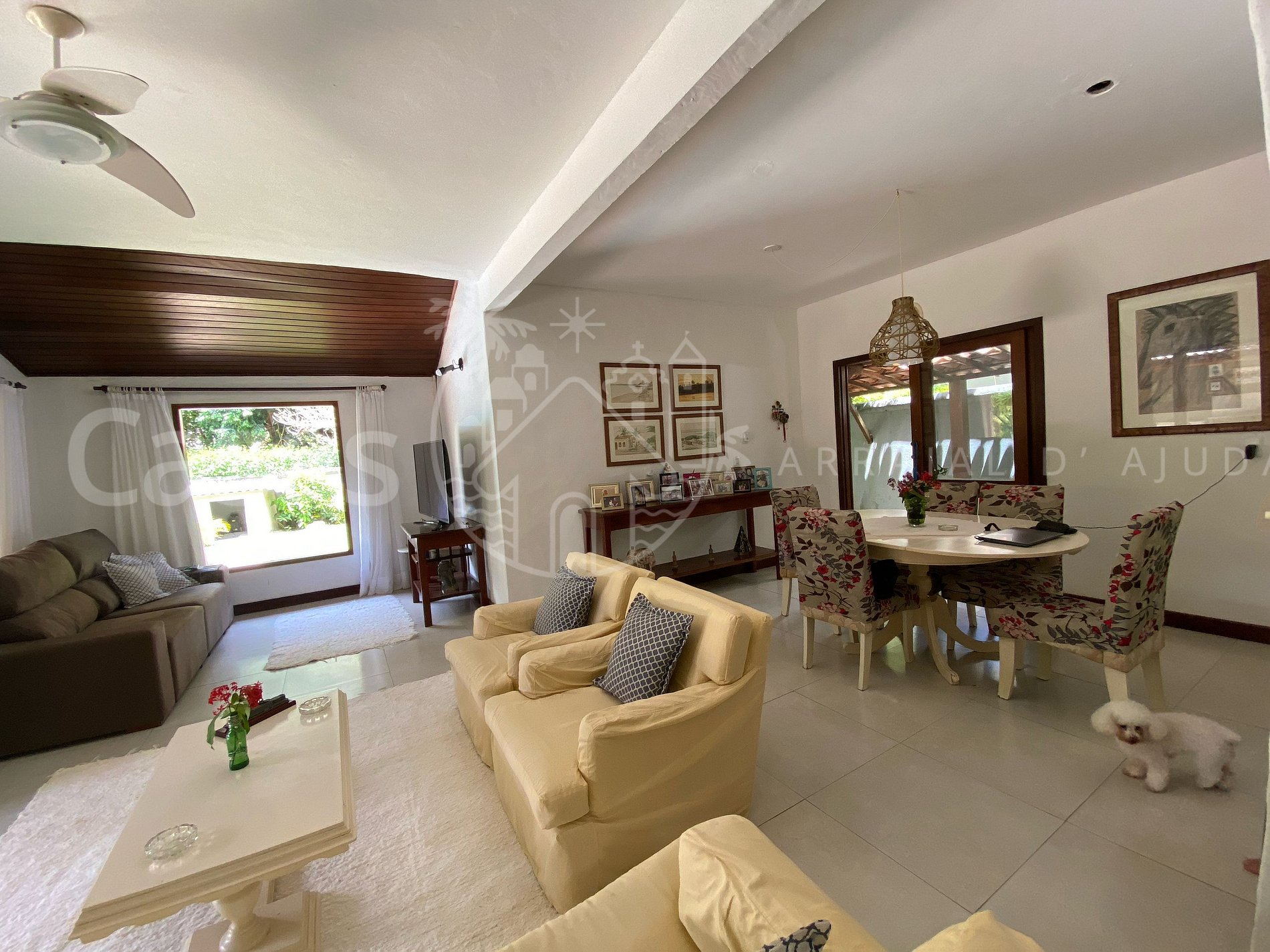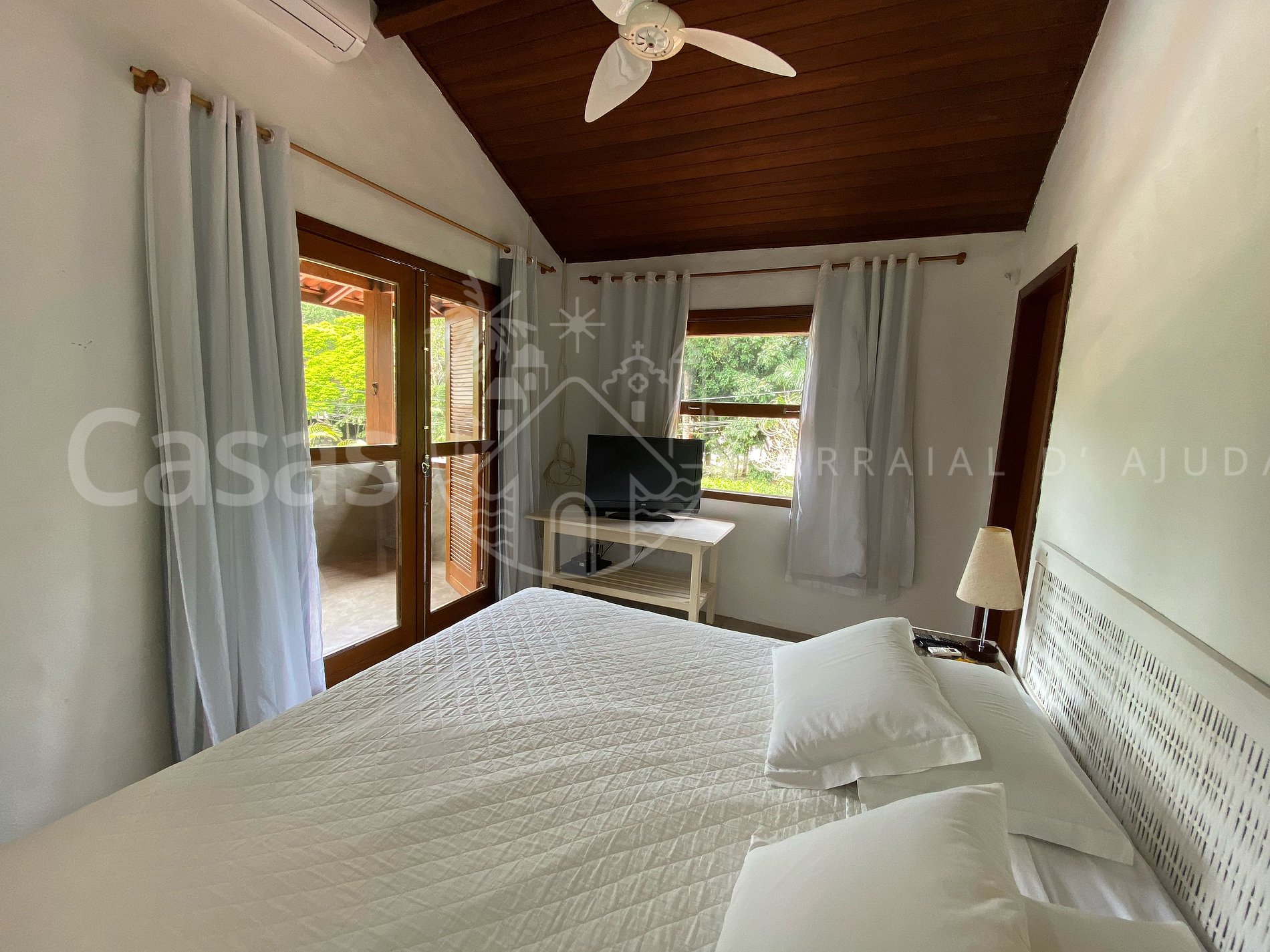 Sua localização privilegiada, em um bairro residencial super tranquilo de Arraial d'Ajuda, oferece ambientes totalmente equipados, com varandinha com rede, sala com ambiente de estar, sala de jantar e sala de TV.