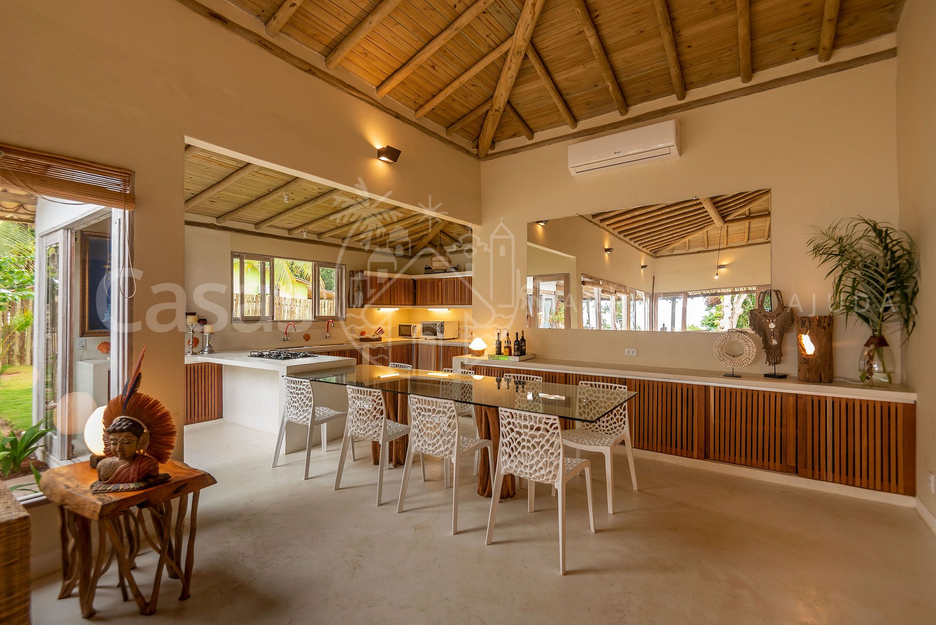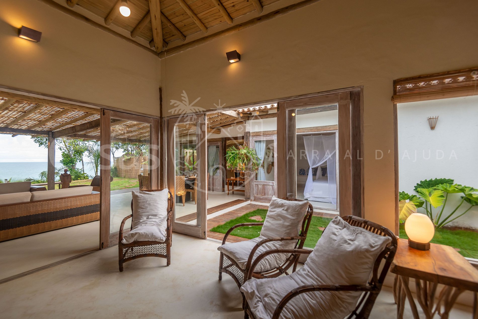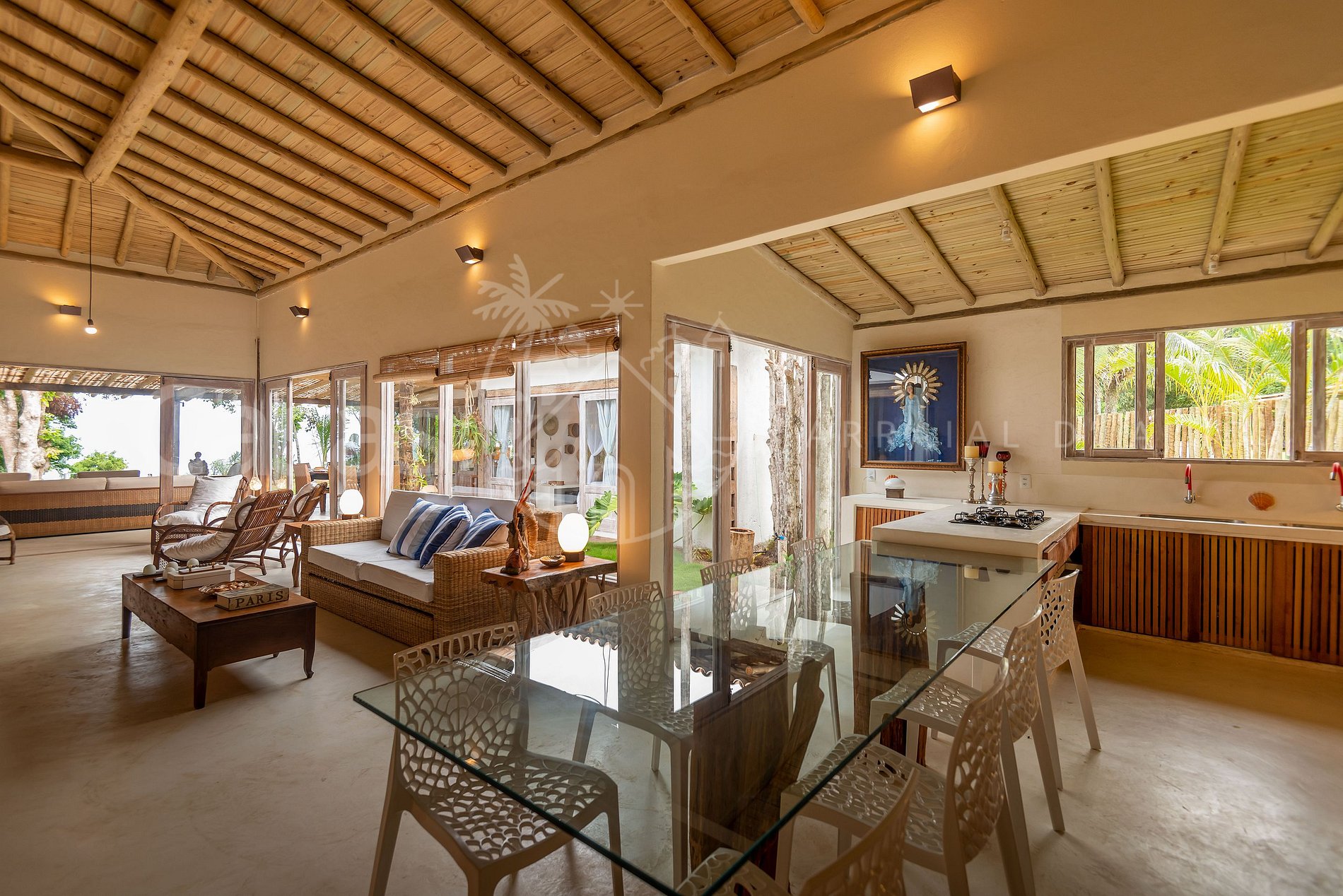 A vista mar de tirar o fôlego emoldura essa casa com todos os cômodos cuidados com extremo bom gosto.