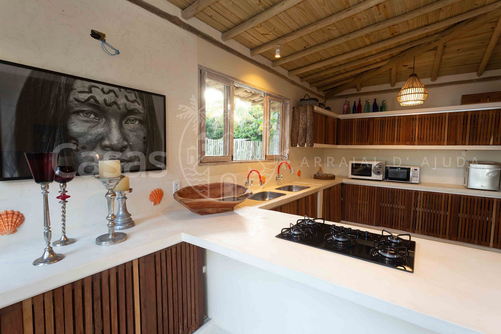 Cozinha principal e Cozinha Gourmet (com uma bela vista para o jardim e mar)