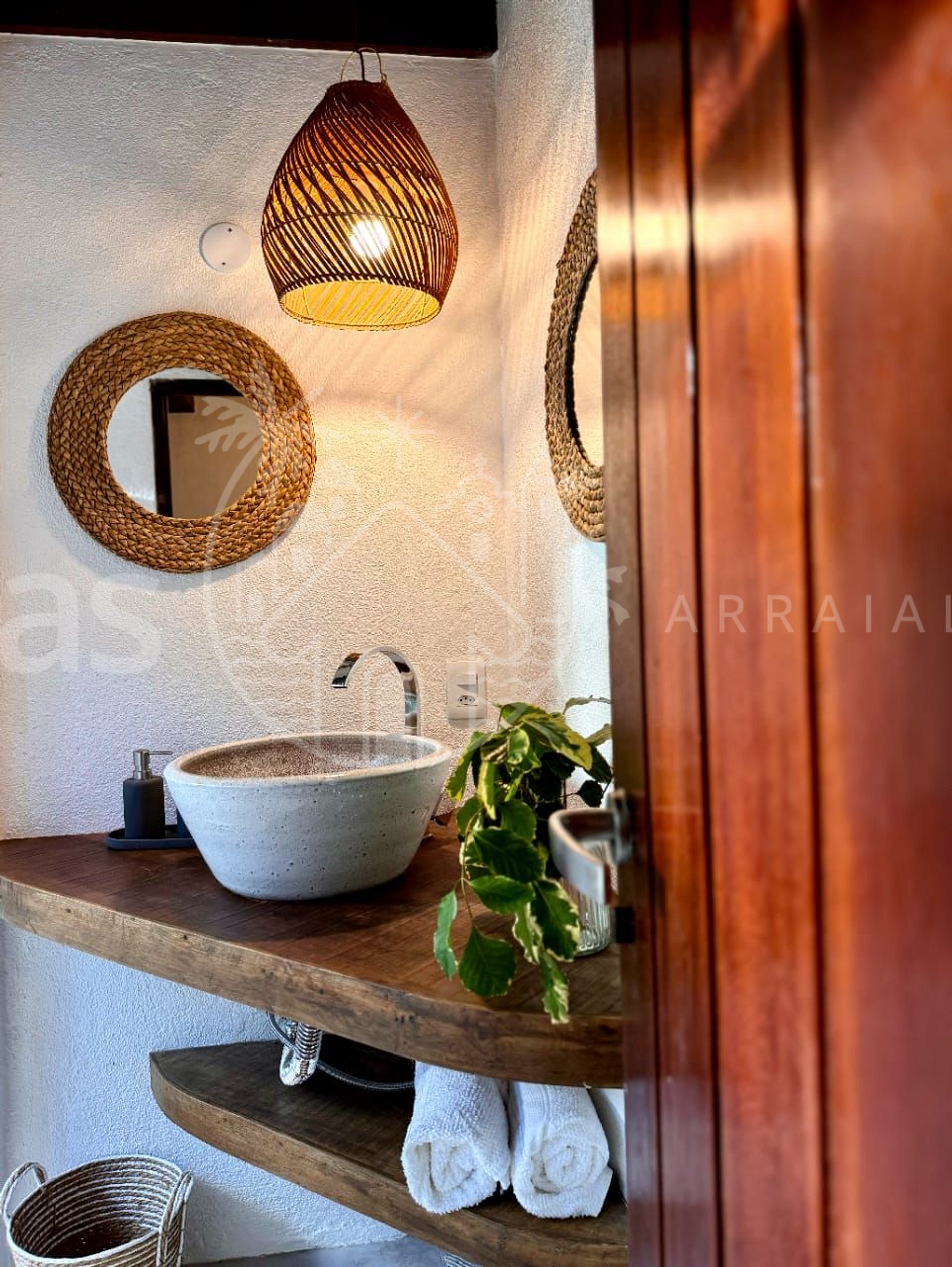 A casa tem como característica a construção clean, em conceito aberto, privilegiando a natureza, sem falar da impressionante vista mar sobre a falésia do Alto Mucugê, o que deixa a Casa Arraiana ainda mais charmosa.