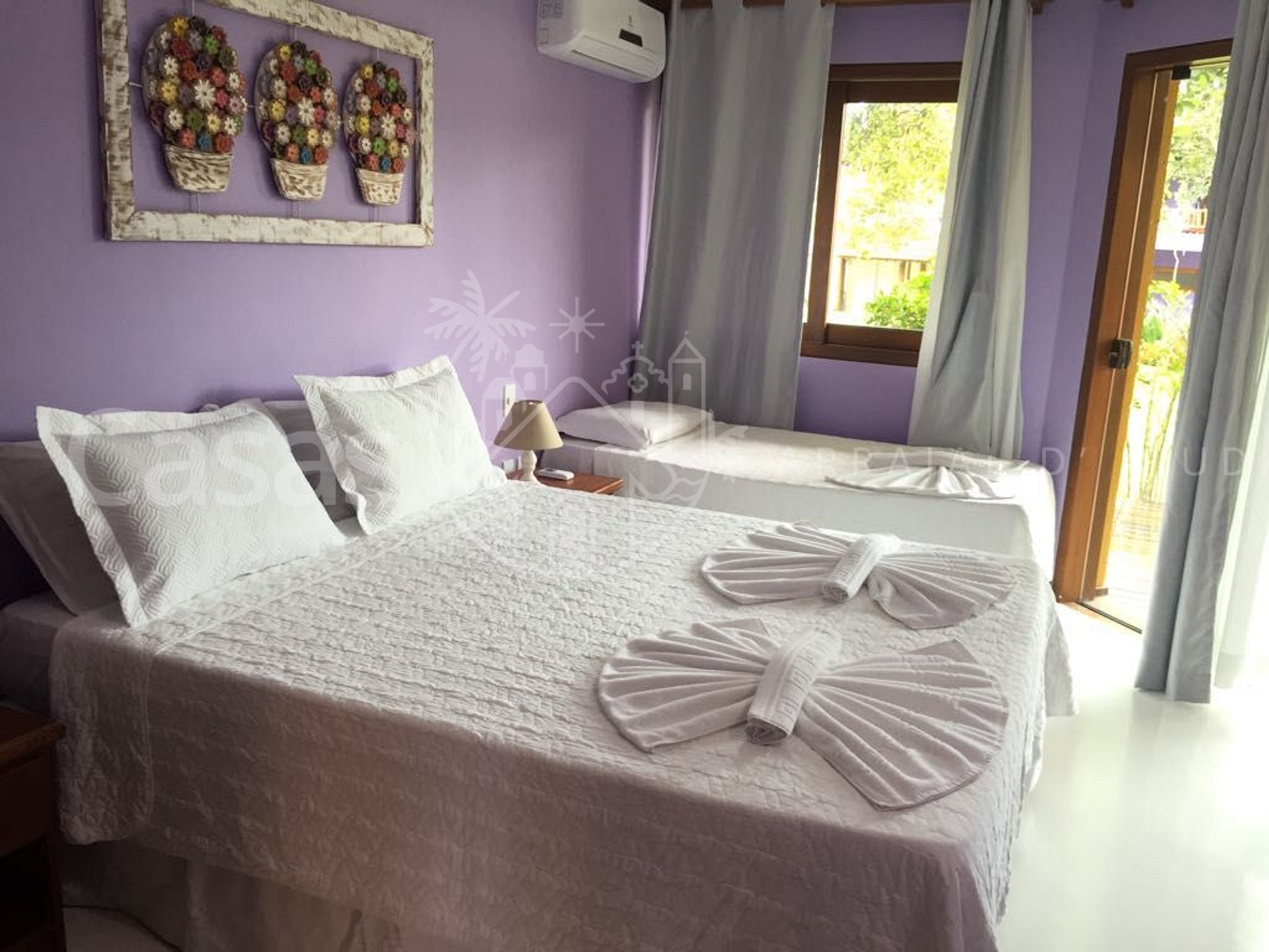 Aconchegante propriedade com quarto espaçoso, cama king size e cama solteiro, ar-condicionado split, sala ampla com cozinha conceito aberto, equipada. Sala com TV 42, streaming e canais de filmes, sofá cama, varanda com rede e divã.