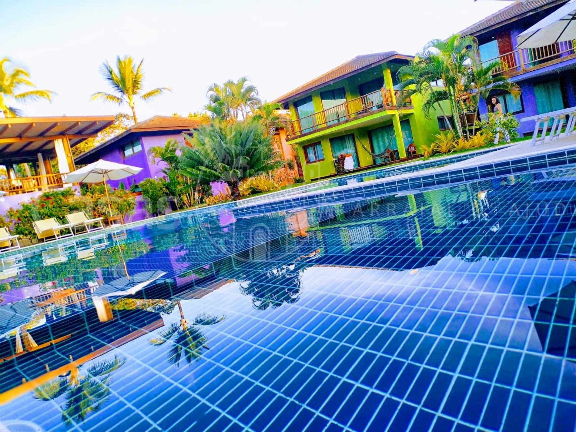 Maravilhoso condomínio de alto padrão, localizado a 50 metros da Praia de Araçaípe, com linda e extensa piscina com hidromassagem em meio a um bem cuidado jardim.