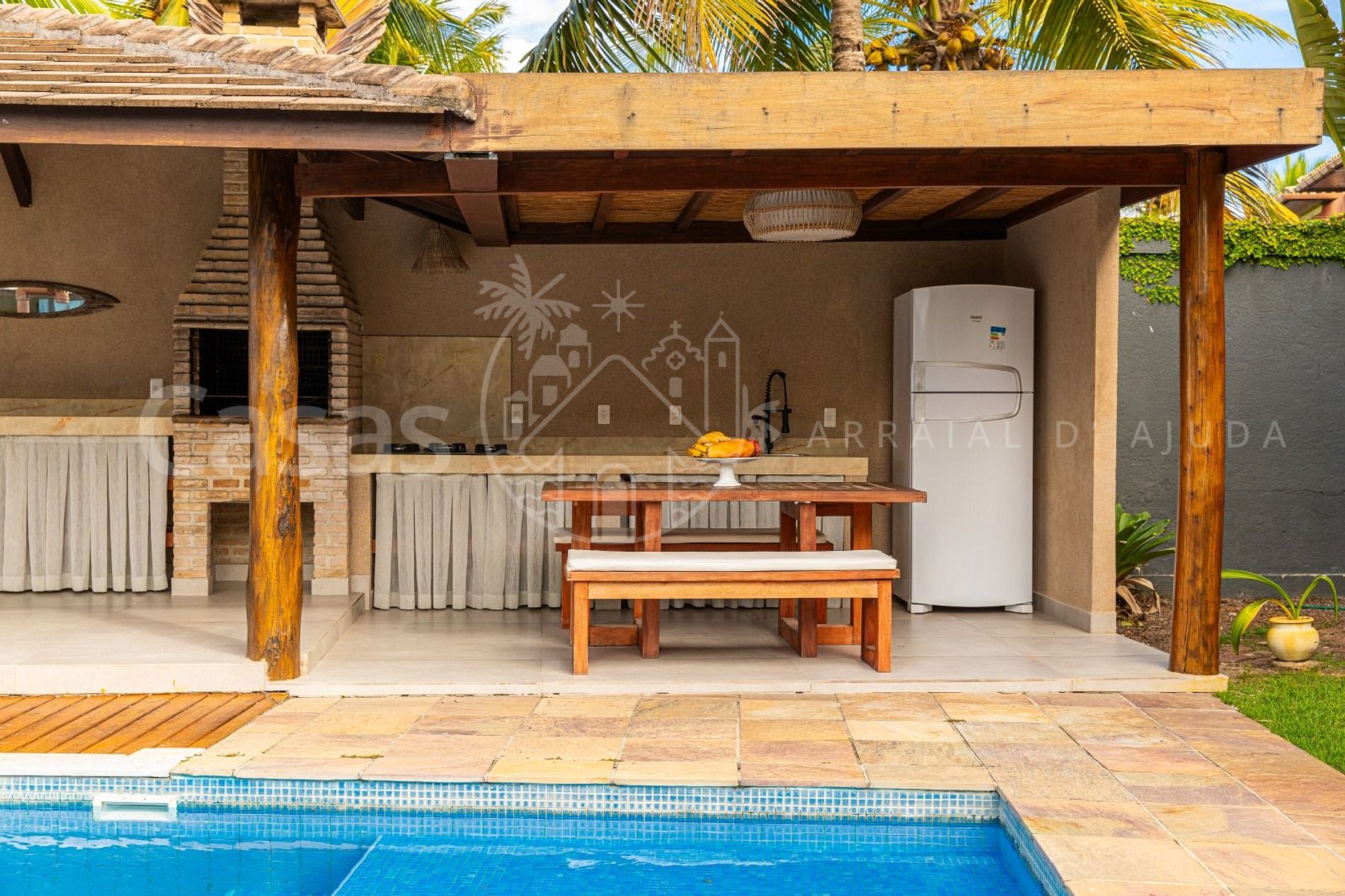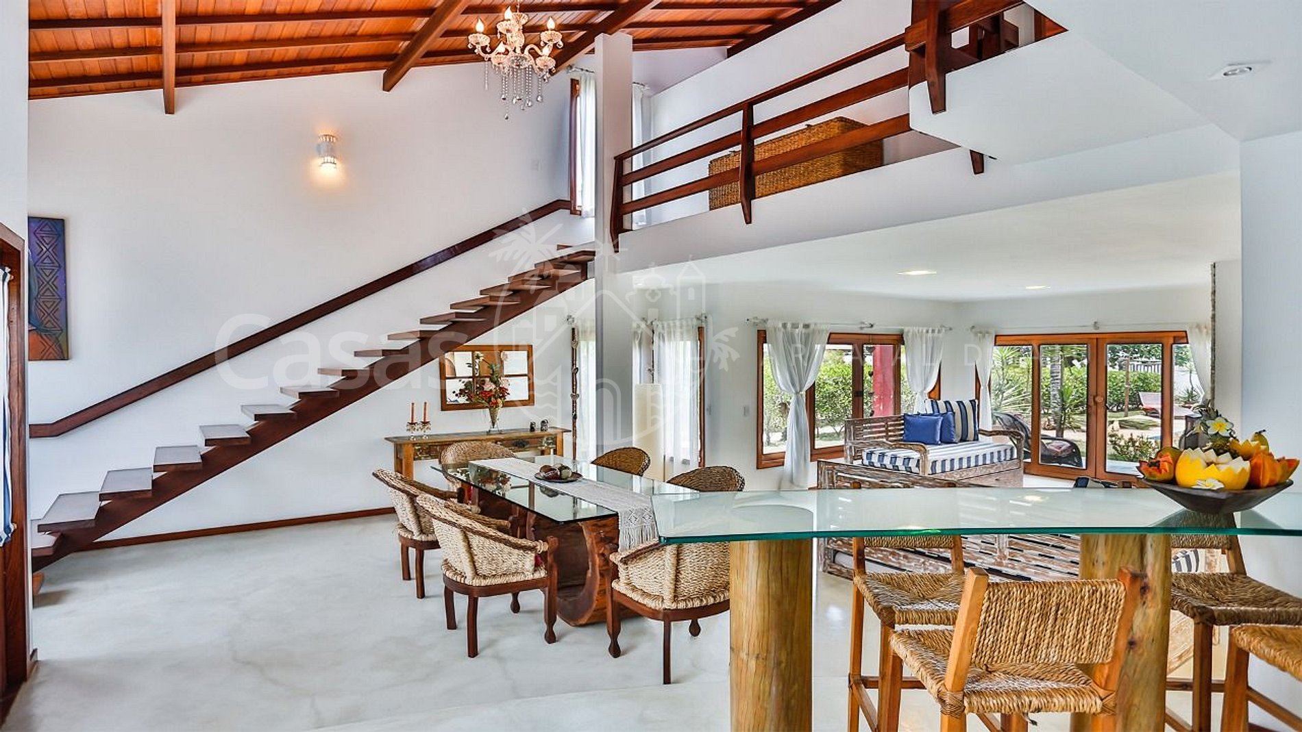 A casa é de frente para uma das mais belas e sossegadas praias de Arraial d’Ajuda, a Praia de Araçaípe.