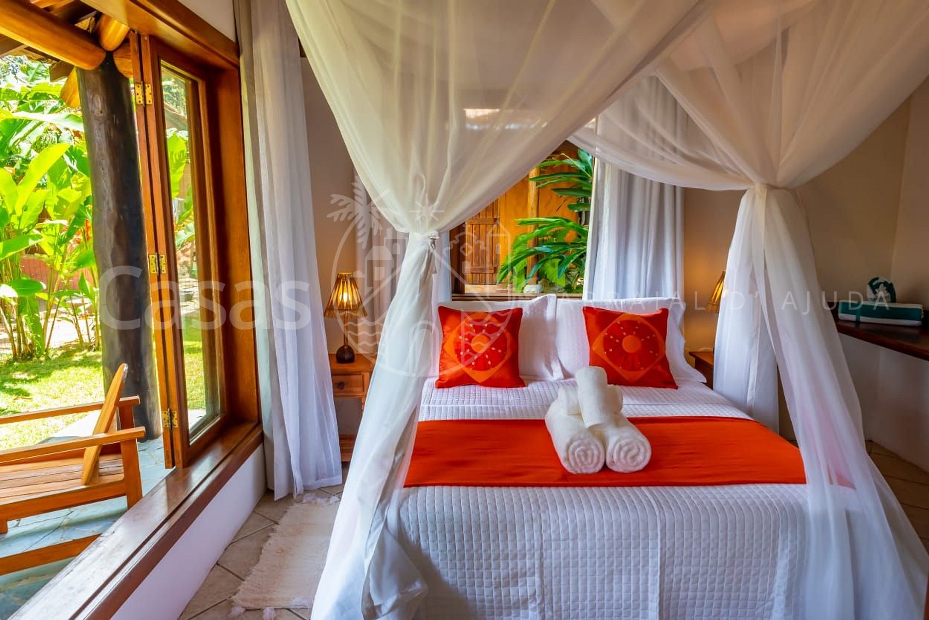 Localizada entre as praias do Apaga Fogo e Araçaípe, a Casa Wari acomoda até 16 pessoas em suas 6 bem decoradas suítes.