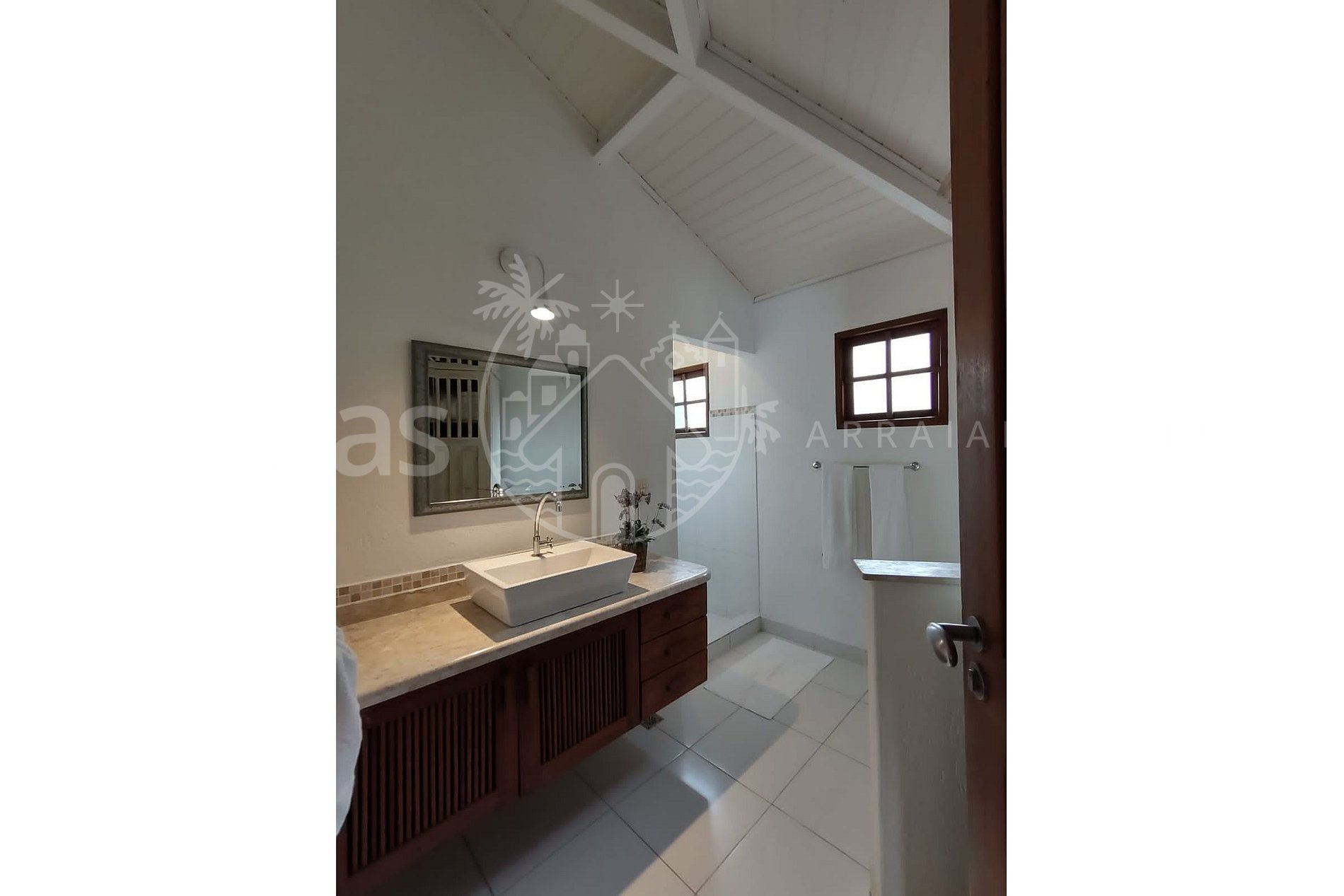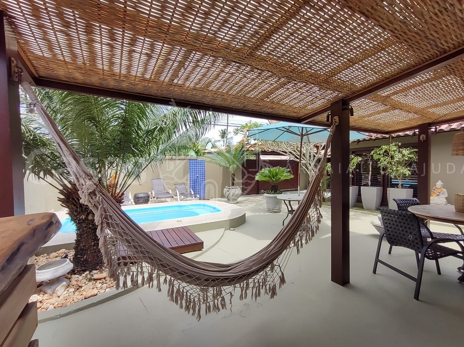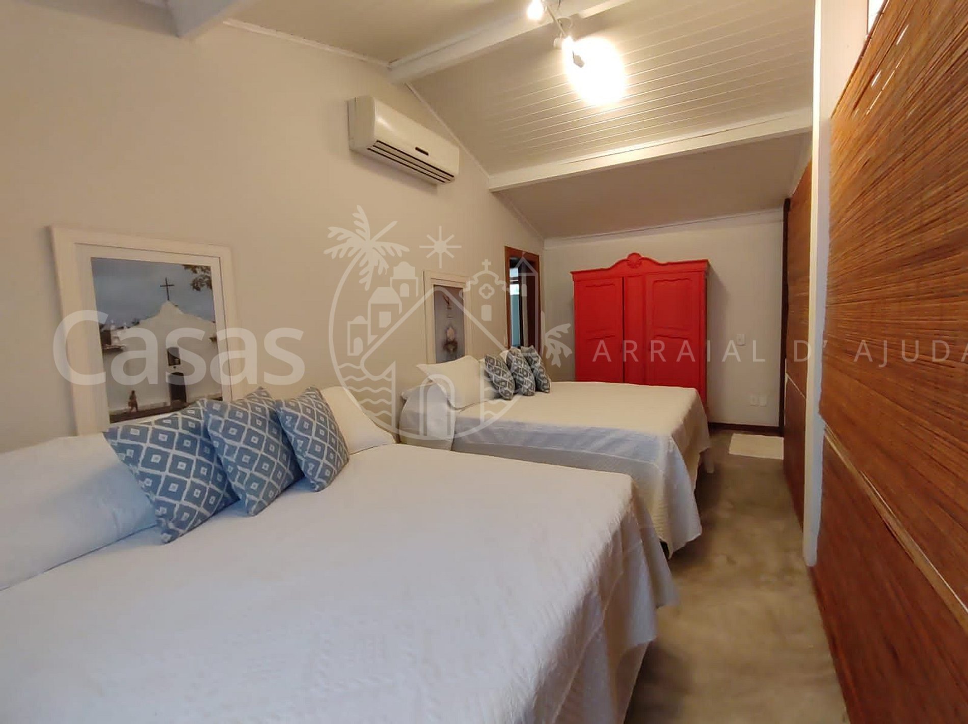 Preparada para acomoda até 10 hóspedes, muito confortavelmente, a casa é moderna e está localizada pertinho da praia de Araçaípe em Arraial d'Ajuda, na Bahia.