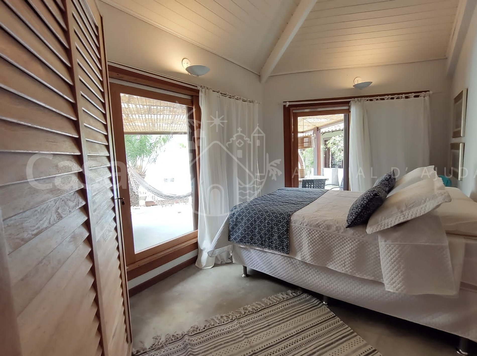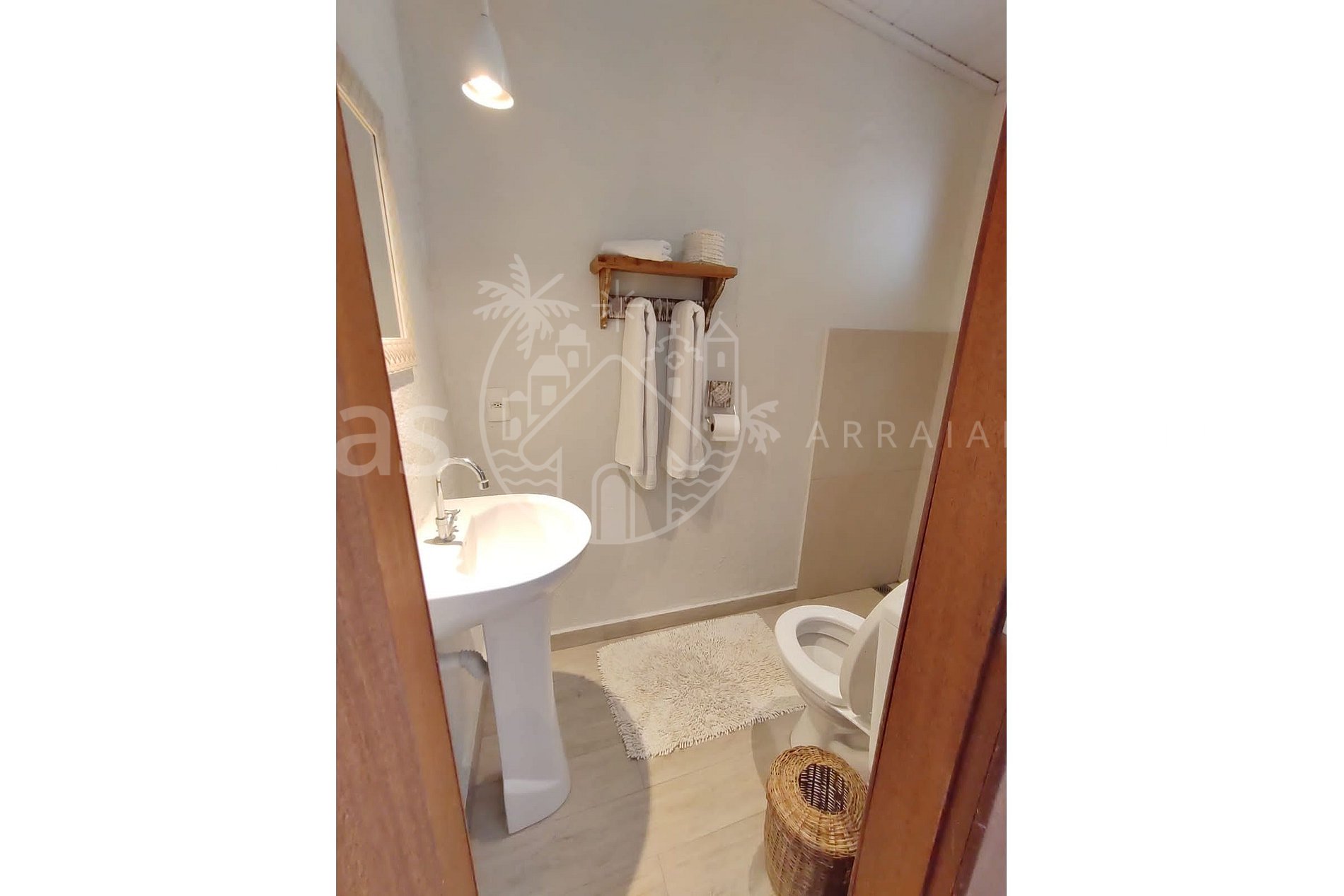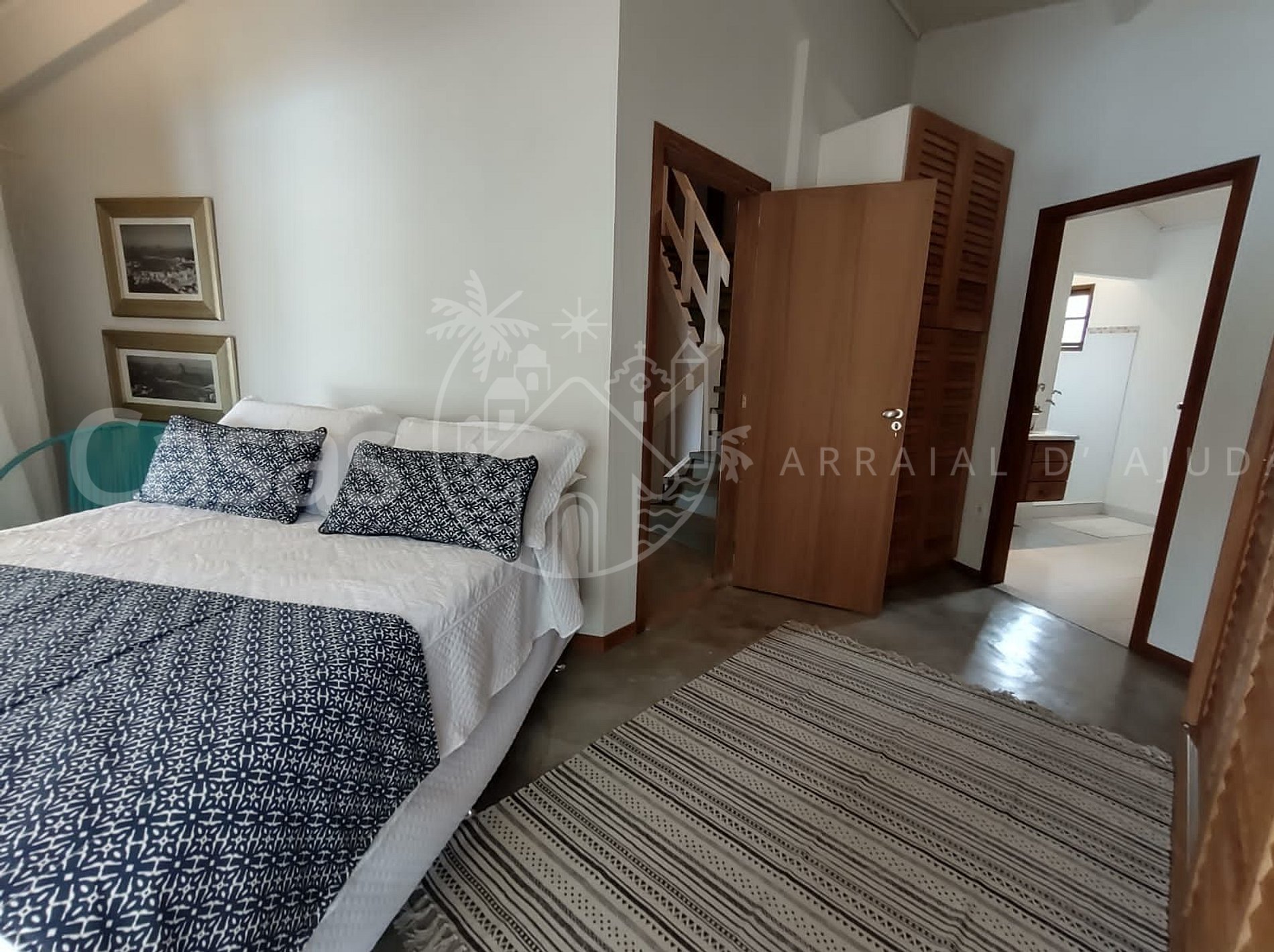 Preparada para acomoda até 10 hóspedes, muito confortavelmente, a casa é moderna e está localizada pertinho da praia de Araçaípe em Arraial d'Ajuda, na Bahia.