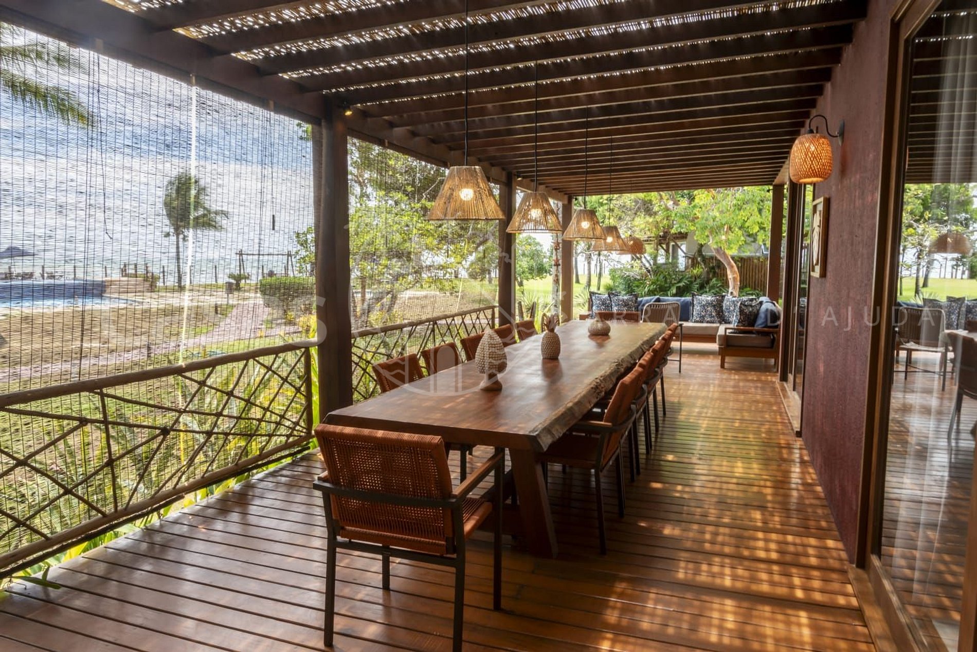 Esta linda propriedade com 6 suítes king size sendo a principal suíte frente mar, todas amplas e climatizadas, sendo 1 suítes no piso térreo, três suítes no piso superior e 2 bangalôs independentes, com ambientes confortáveis e aconchegantes, oferece acomodação para 12 hóspedes com estrutura impecável.