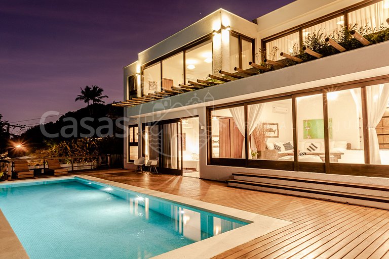 Localizada no coração do Arraial d'Ajuda!A Casa Blanca possui quatro quartos com cama king size, todas com linda vista mar, duas suítes principais no piso superior, uma semi suíte térrea e uma suíte frente piscina.