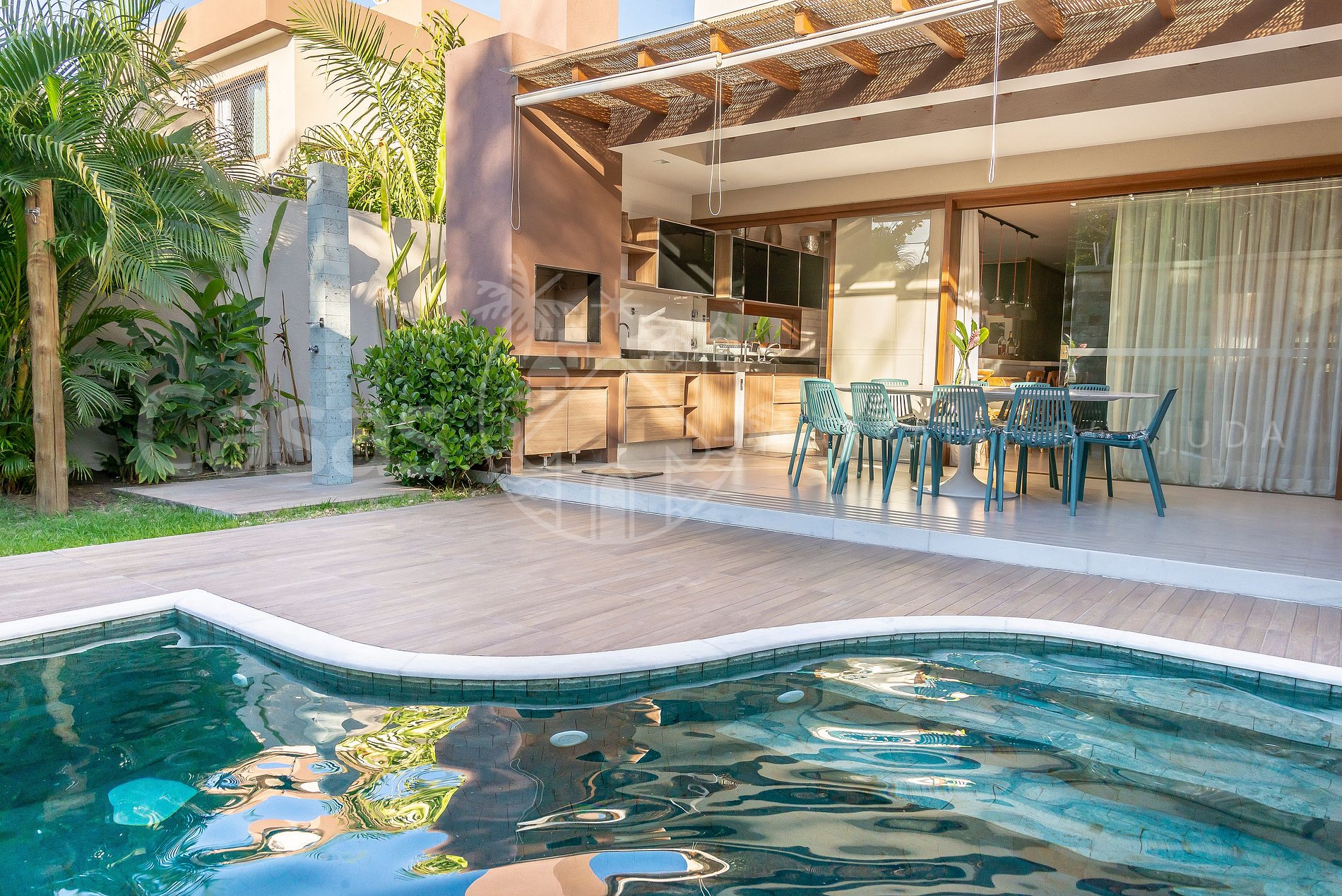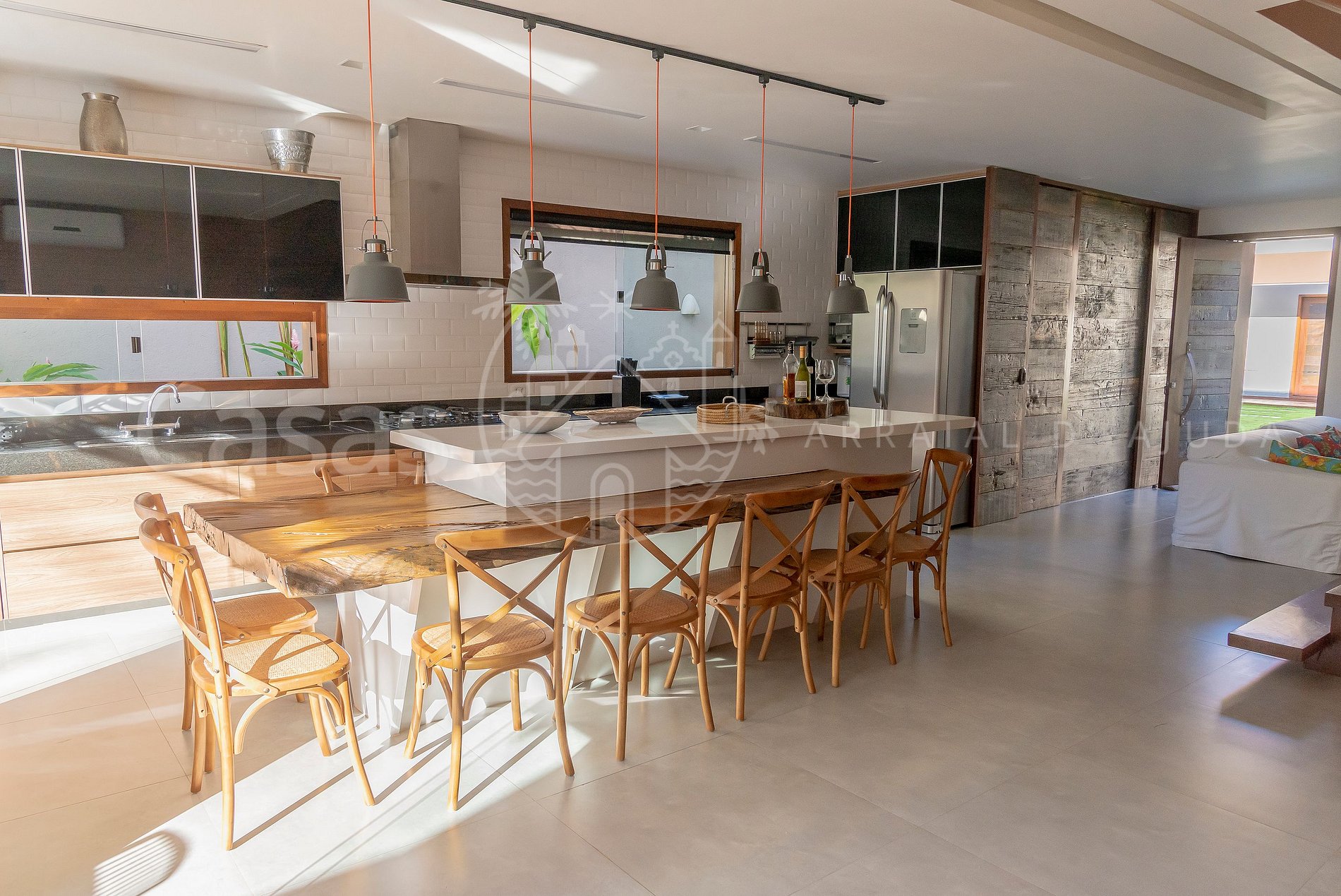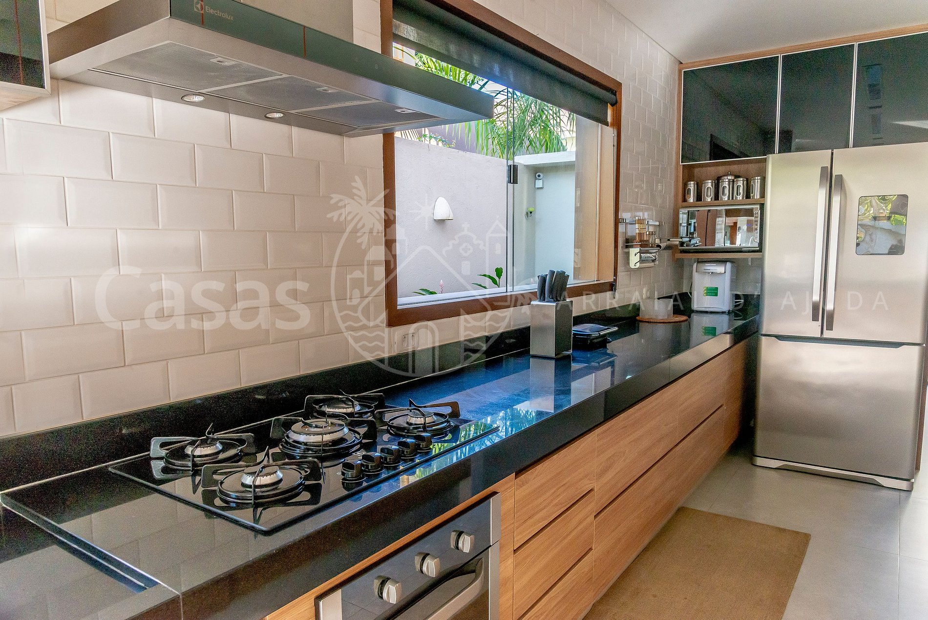 A casa é lindamente decorada e totalmente equipada, com sala ampla de TV, equipada com Wi-Fi e TV a cabo, cozinha conceito aberto com ilha central, adega climatizada e completa em utensílios. Permite acesso a sala de estar e espaço gourmet com uma perfeita piscina com jacuzzi, ducha externa e linda estrutura de lazer com churrasqueira.