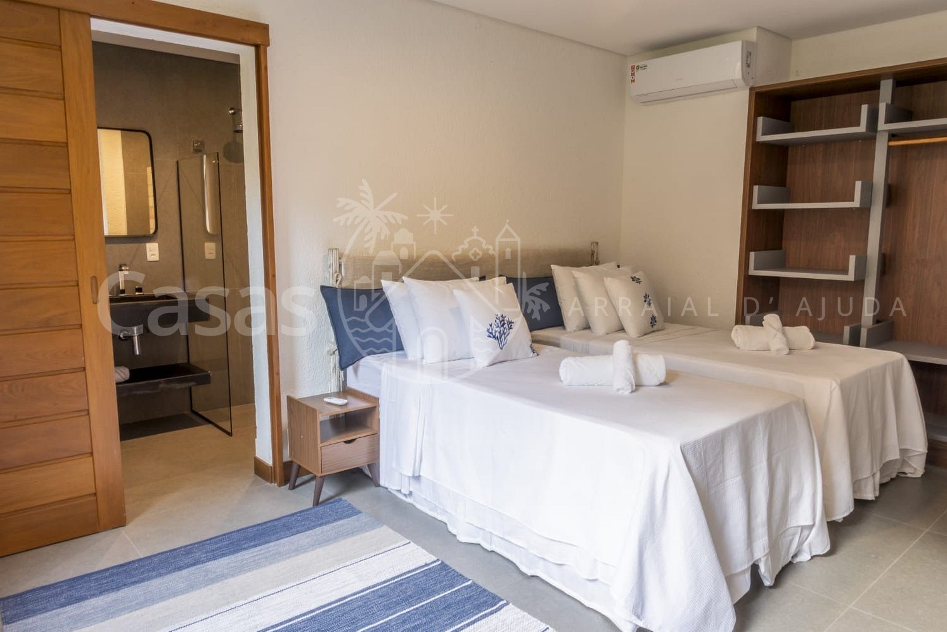 Suíte 2 – Piso superior: Cama king (ou 2 solteiro) ar-condicionado, armário