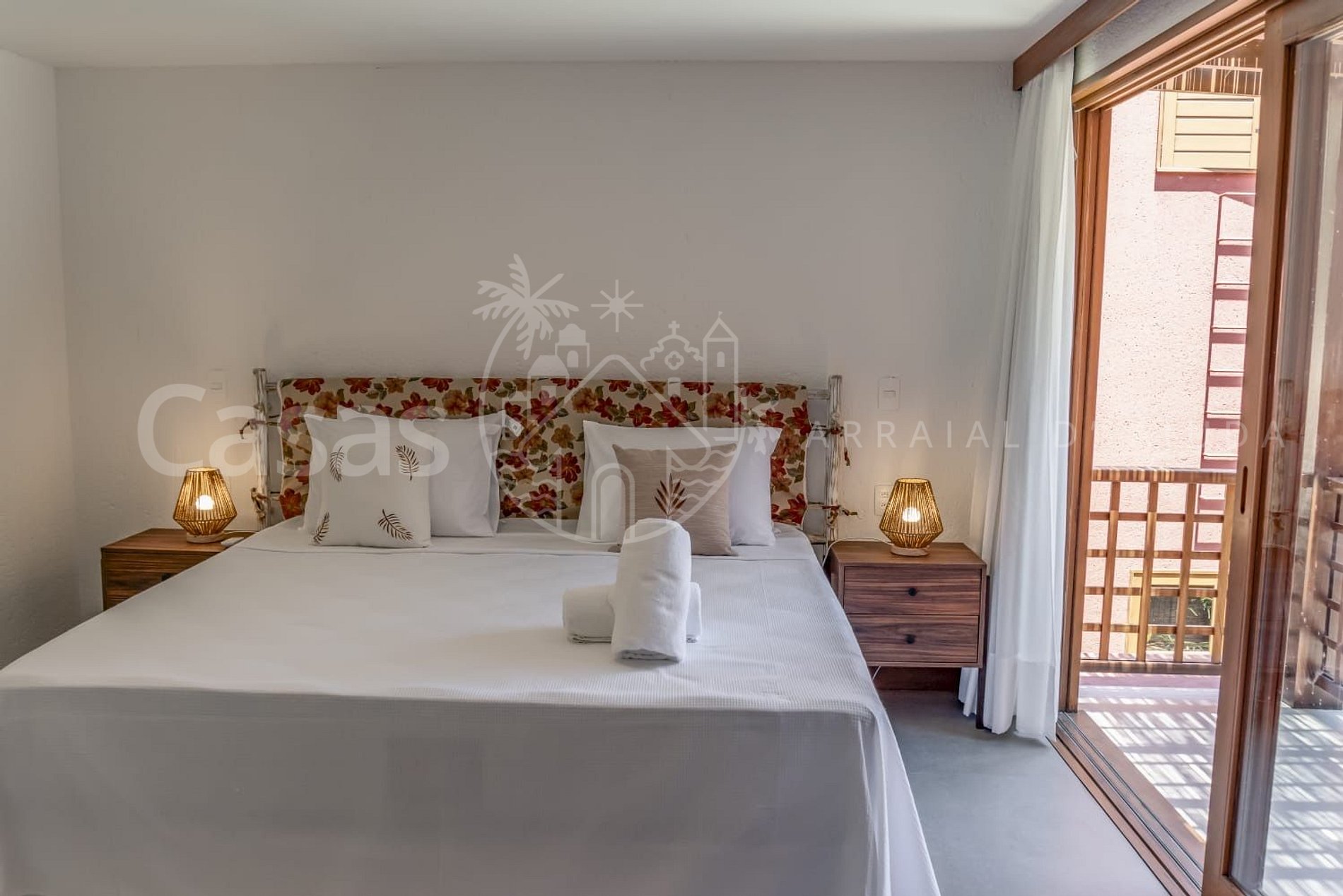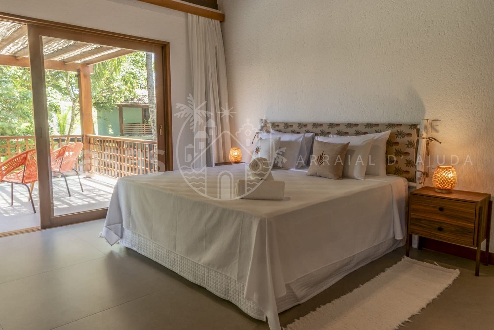 Suíte 3 – Piso superior: Cama king, ar-condicionado, varanda